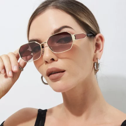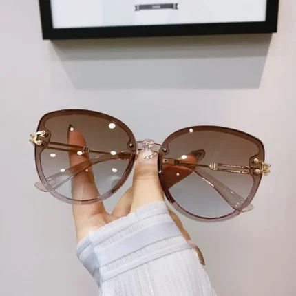 다이아몬드 컷 에지 패션 브랜드 디자인 선글라스 여성용 타원형 무테 선글라스 운전 안경용 여성용 메탈릭 선글라스