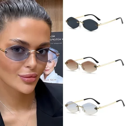 프레임리스 컷 에지 선글라스 다이아몬드 모양의 맞춤형 레오파드 선글라스 UV 방지 소형 프레임 UV400 선글라스 New