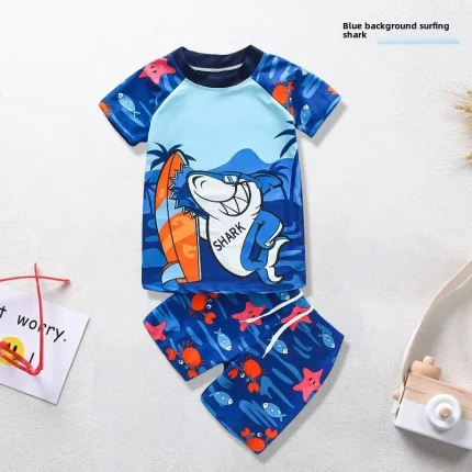 공장 직접 소년 수영복 여름 짧은 소매 만화 2024 소년 어린이 투피스 양복 수영 모자 수영 팬티