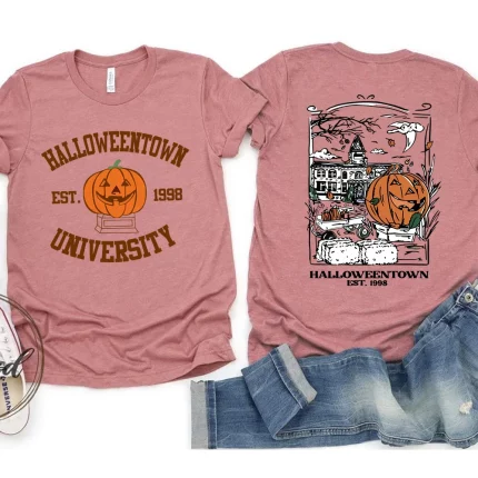 2025 할로윈타운 1998 티셔츠 2면 프린트 할로윈타운 대학교 셔츠 호박 가을 티셔츠 레트로 할로윈 파티 티셔츠