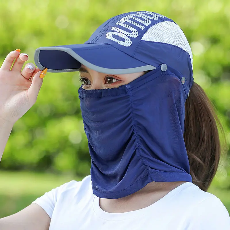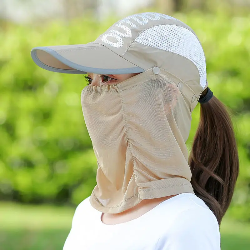 남녀공용 여름 후드 야구 모자, 자외선 차단 마스크, 페이스 커버, 사이클링 운전 등반, 야외 탈착식 태양 UV 차단 모자