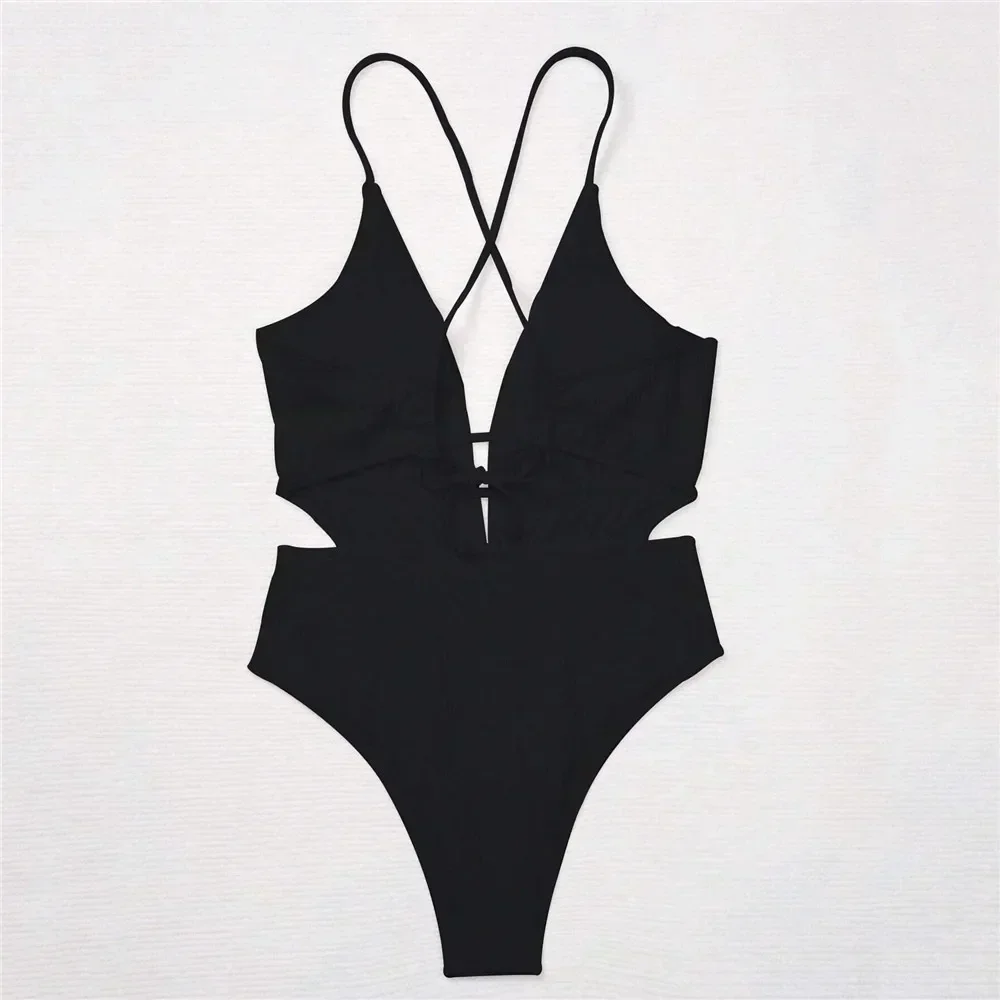 “섹시한 블랙 늑골이있는 등이없는 수영복 원피스 수영복 여자 2025 문자열 크로스 수영복 수영복 Bathers Bodysuit”의 첫 상품평을 남겨주세요 응답 취소