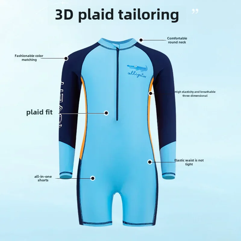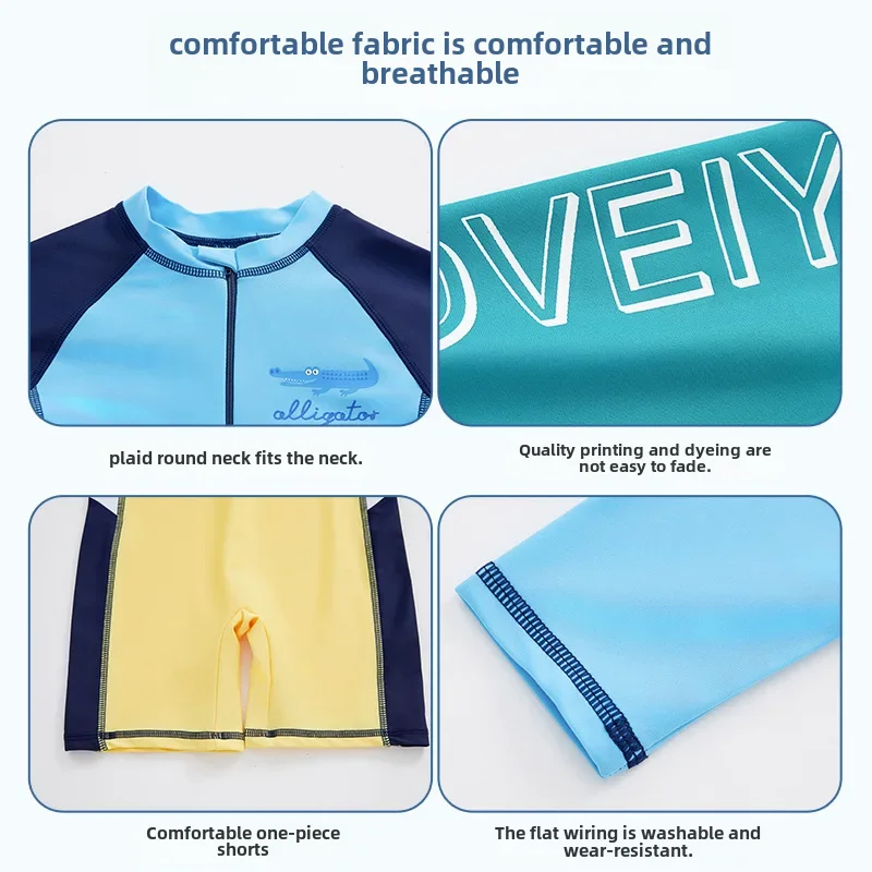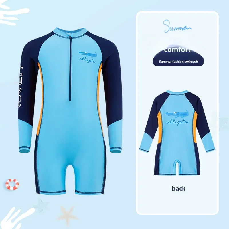 아동용 긴 소매 자외선 차단 원피스 수영복, 남아용 편안한 착용감, 학생 수영 기어, 여름 신상