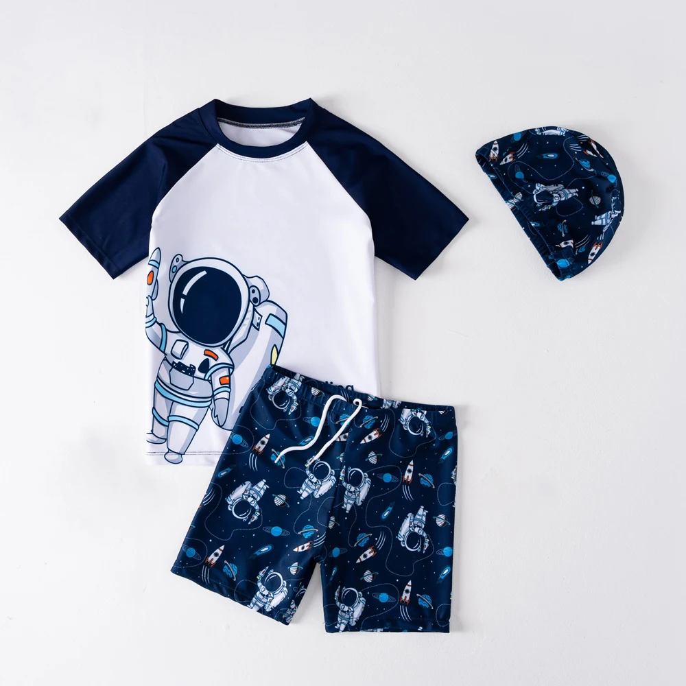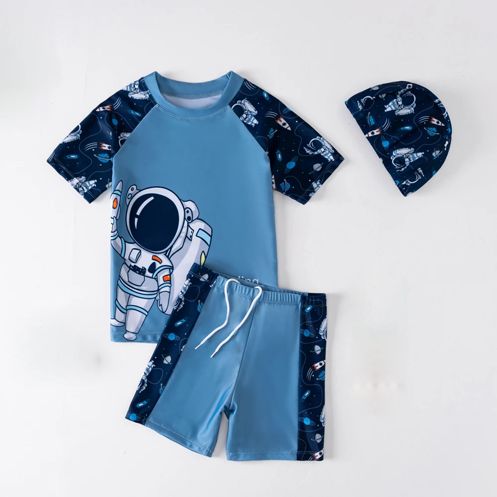 여름 어린이 수영복 소년 짧은 소매 Beachwear Anstronaut 어린이 만화 귀여운 빠른 건조 소년 수영복 세트 소년 수영복