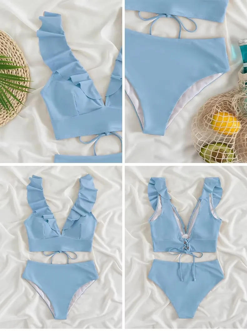 여성용 투피스 비키니 세트, 섹시한 수영복, 탱키니 패션, 프릴 비키니, 수영 세트, 여름 비치웨어 의류
