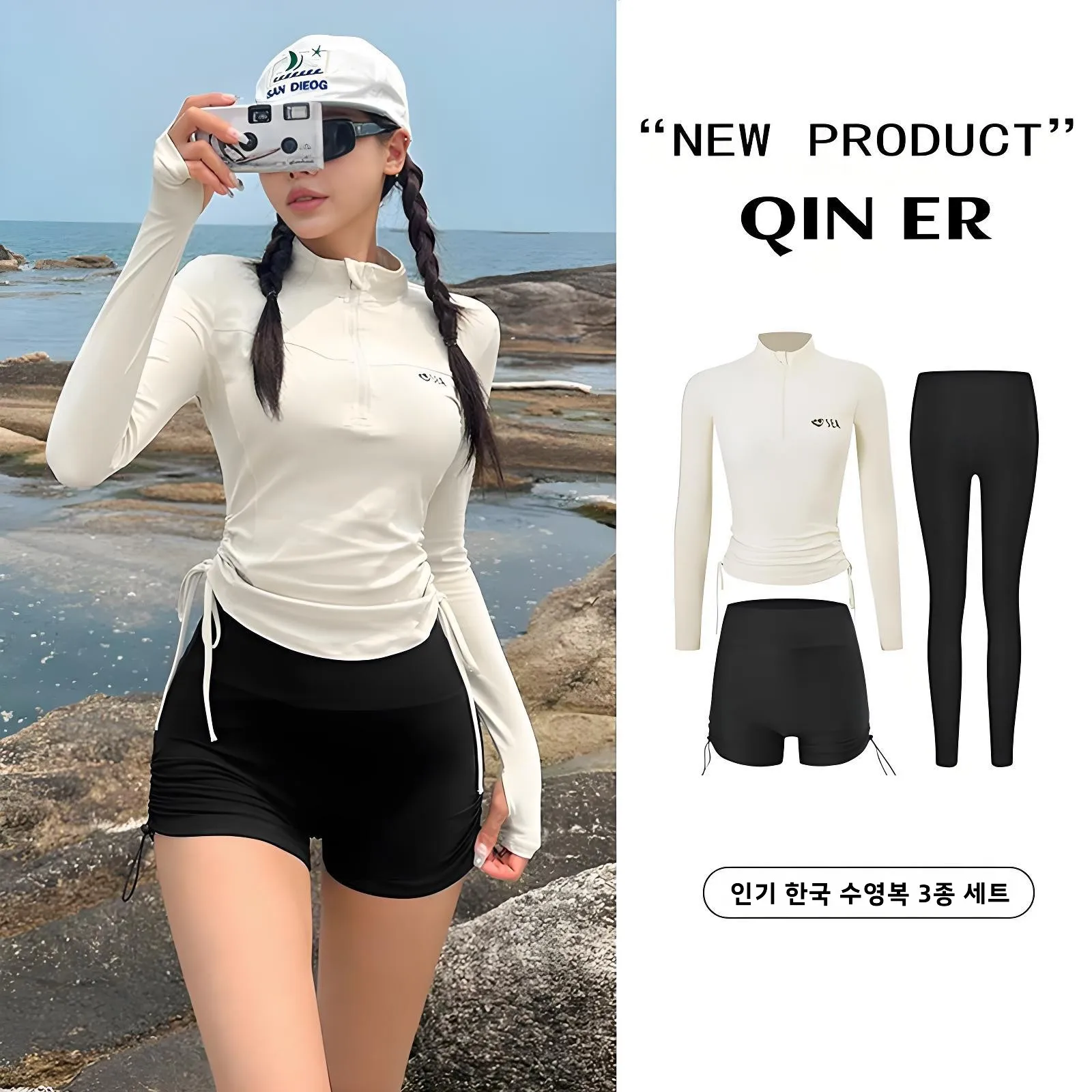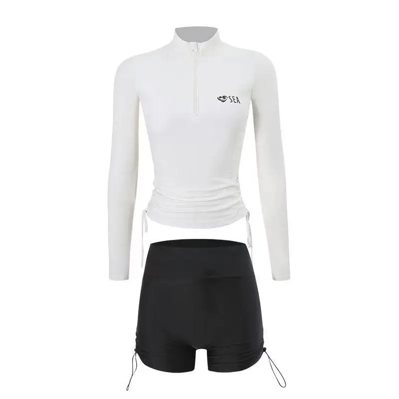 여성용 투피스 운동복 수영복 긴 소매 열 자외선 차단제 슬리밍 은폐 수영 온천 슈트 피트니스 레저