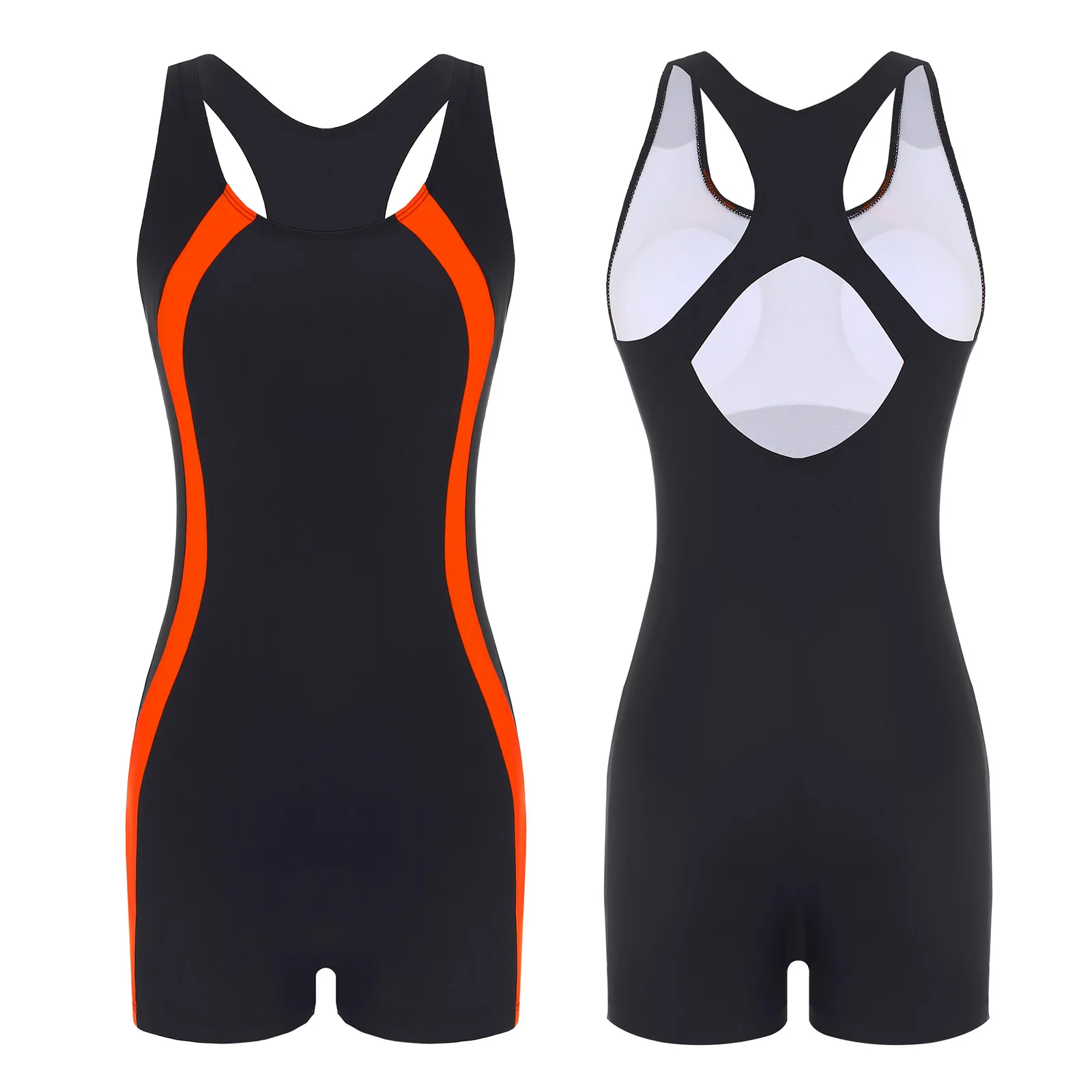 여성 민소매 Boyleg 운동 수영복 원피스 Racerback 겸손한 수영복 패딩 수상 스포츠 점프 슈트 비치 서핑