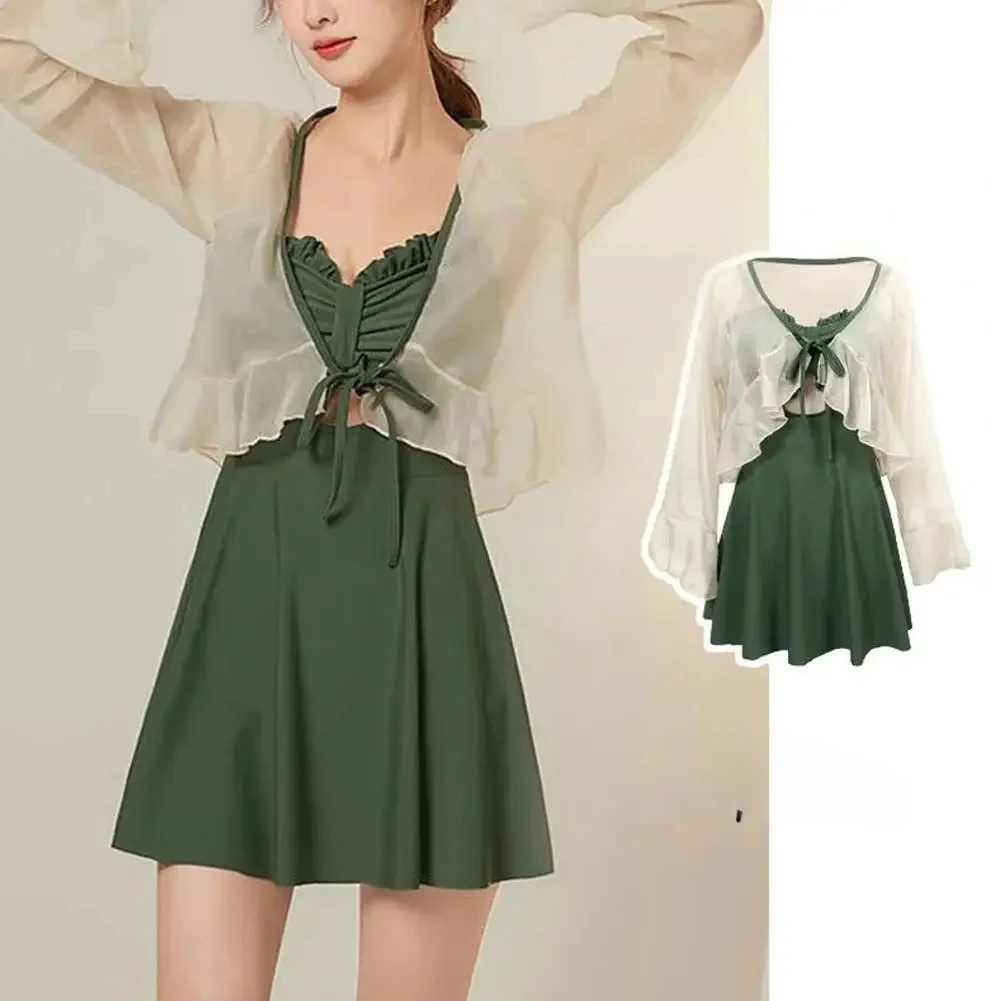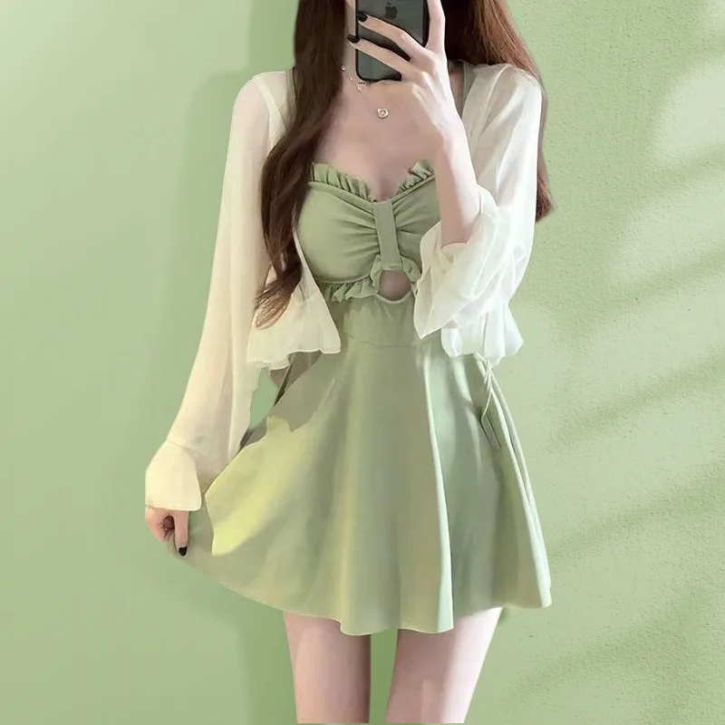러플 패션 장식이 돋보이는 멋진 투피스 모노키니 세트입니다.
