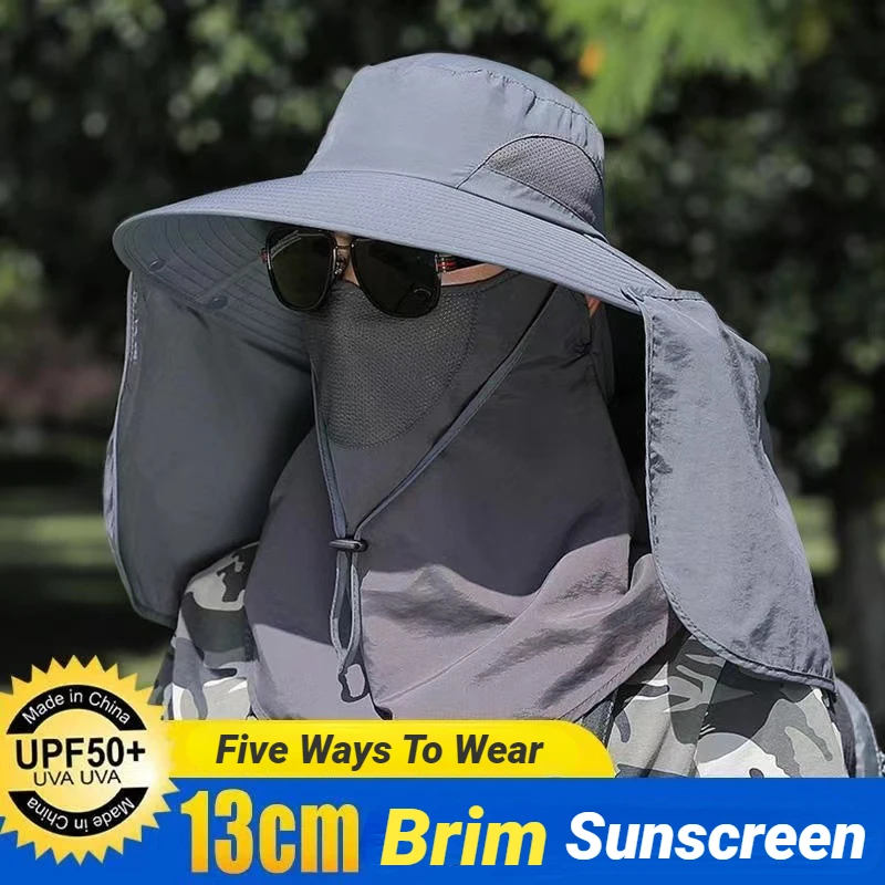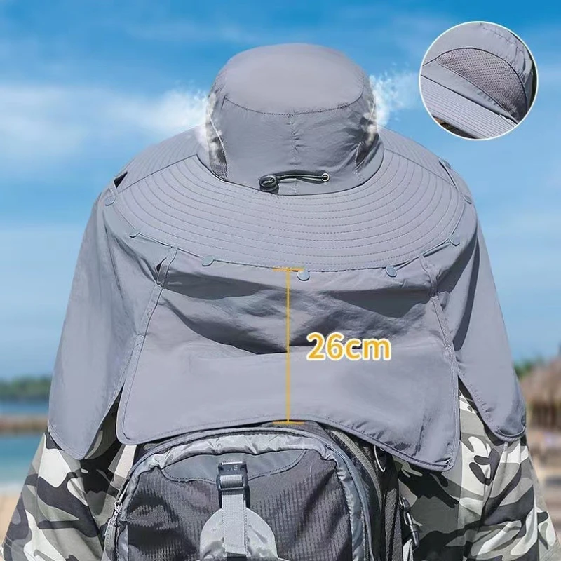 자외선 차단제 낚시 모자 모기 구충제 통기성 하이킹 태양 모자 얼굴 덮음 분리형 자외선 방지 목도리 모자 빠른 건조