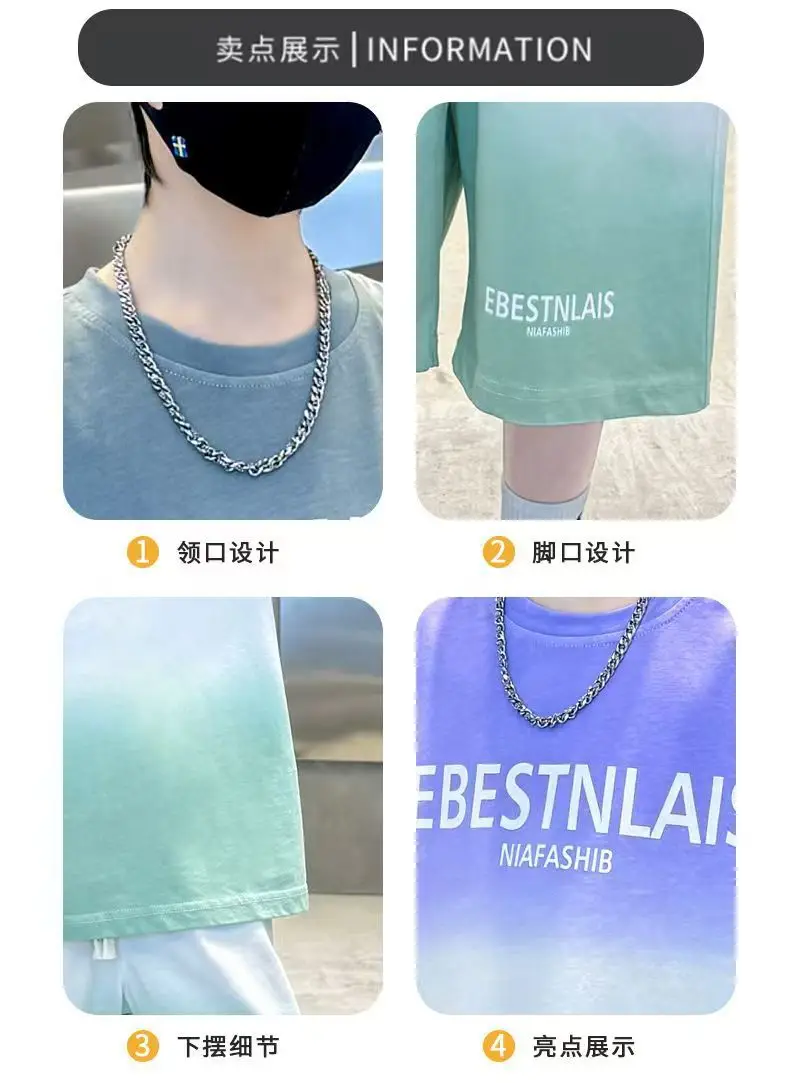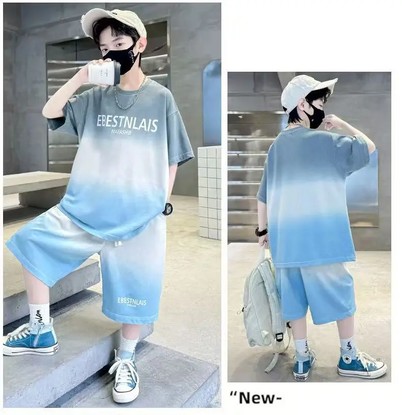 “2025년 여름 10대 남아 의류 세트 아동 레터링 트레이닝복 유아 티셔츠 상의 + 루즈핏 하의 반바지 바지 4 8 10 12 14세”의 첫 상품평을 남겨주세요 응답 취소