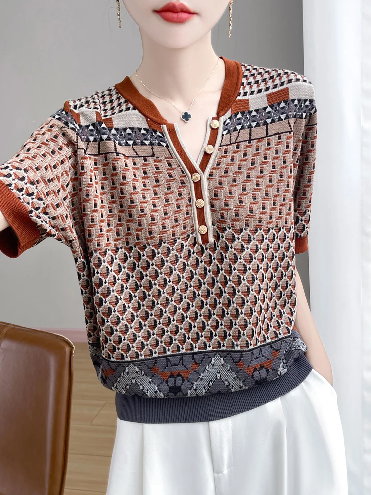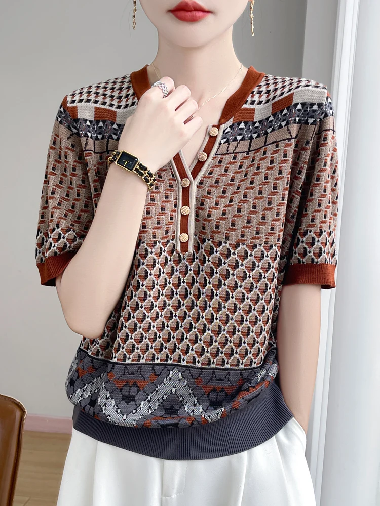 2025 신상 빅사이즈 여름 반팔 가위넥 티셔츠 여성 고급 티셔츠 패션 편안한 레저 티셔츠 탑