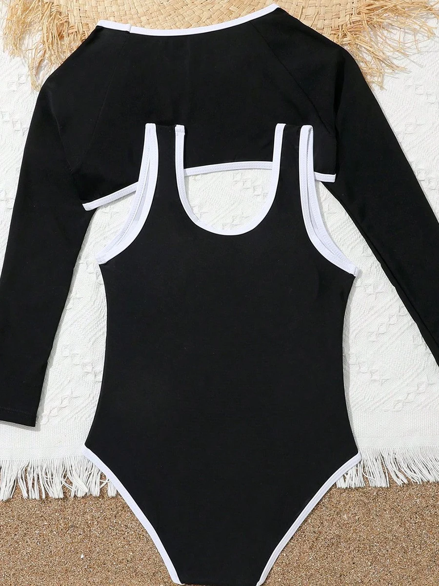 3피스 신상 남아 수영복 자외선 차단 UPF 50+ 긴팔 수영복 모자 포함 속건 아동 수영복