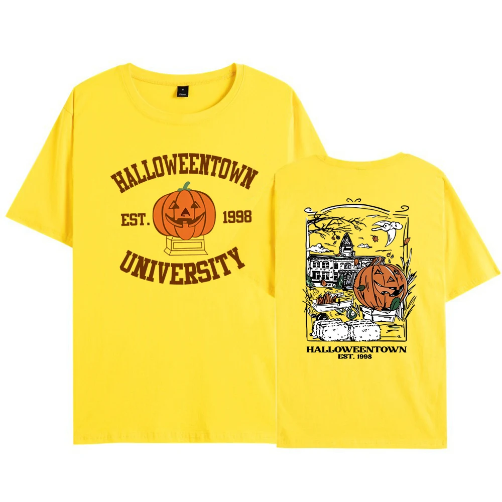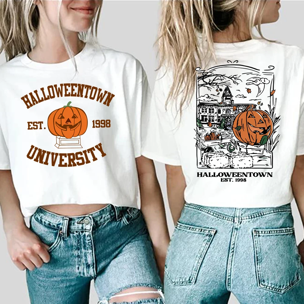 2025 할로윈타운 1998 티셔츠 2면 프린트 할로윈타운 대학교 셔츠 호박 가을 티셔츠 레트로 할로윈 파티 티셔츠