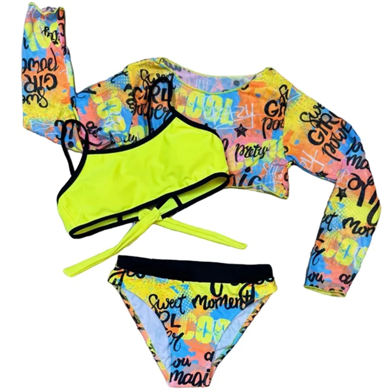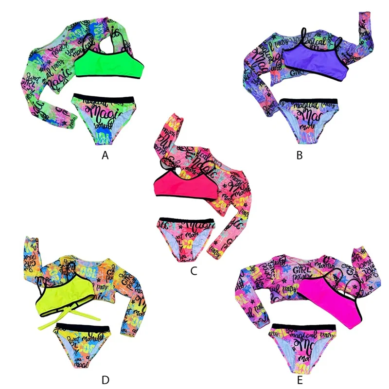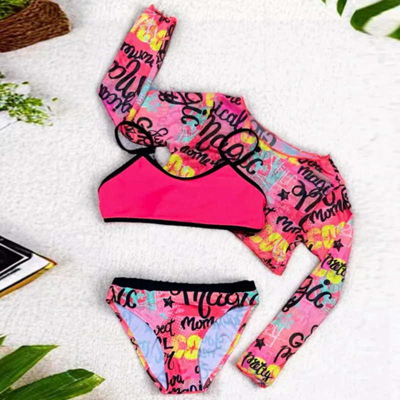 3PCS 7-12 세 어린이 소녀의 인쇄 비키니 세트 어린이 수영복 조끼 간략한 수영복 수영복