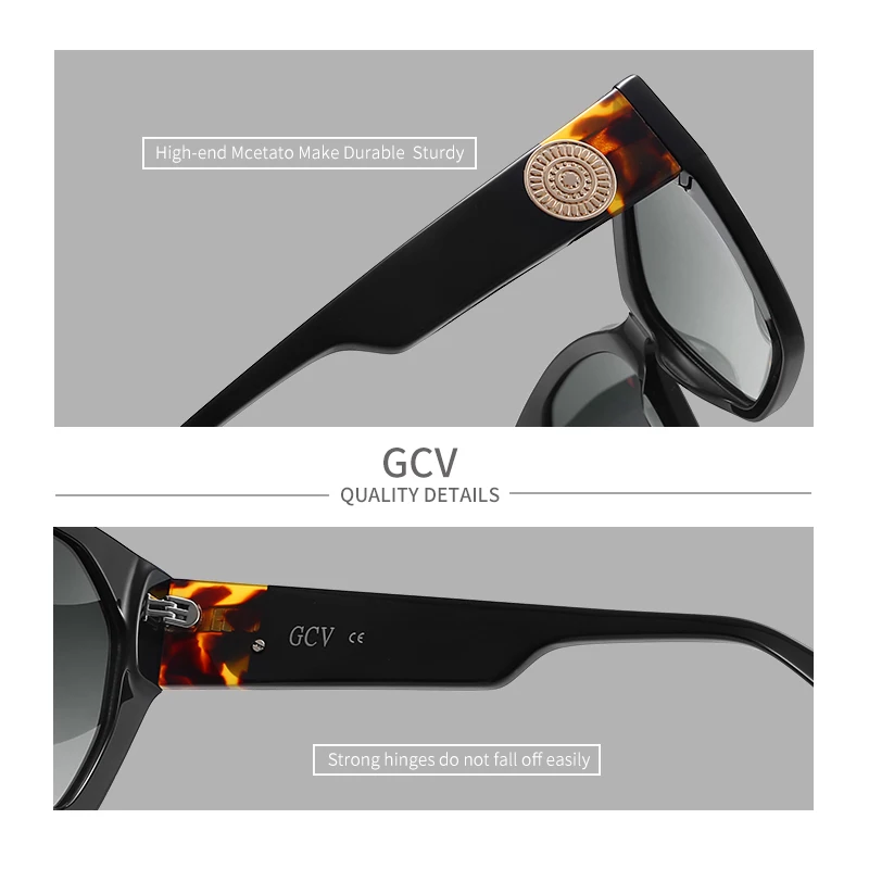 GCV 브랜드 아세테이트 외관 특허 디자인 여성용 나비 직사각형 삼각형 편광 선글라스 UV400 패션
