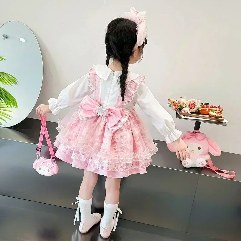 Sanrio Sanrio 마이 멜로디 어린이 코스프레 드레스 반팔 핑크 소녀 카와이 의류 공주 드레스 어린이 애니메이션 선물