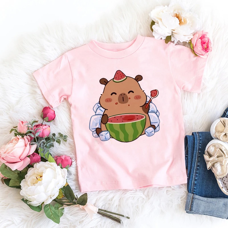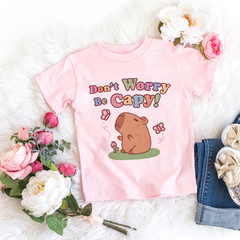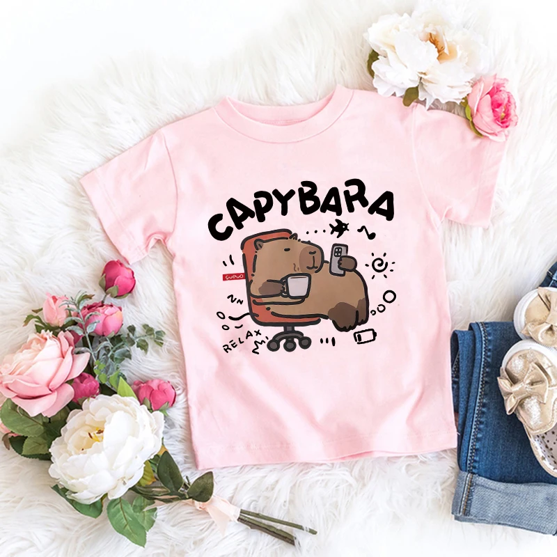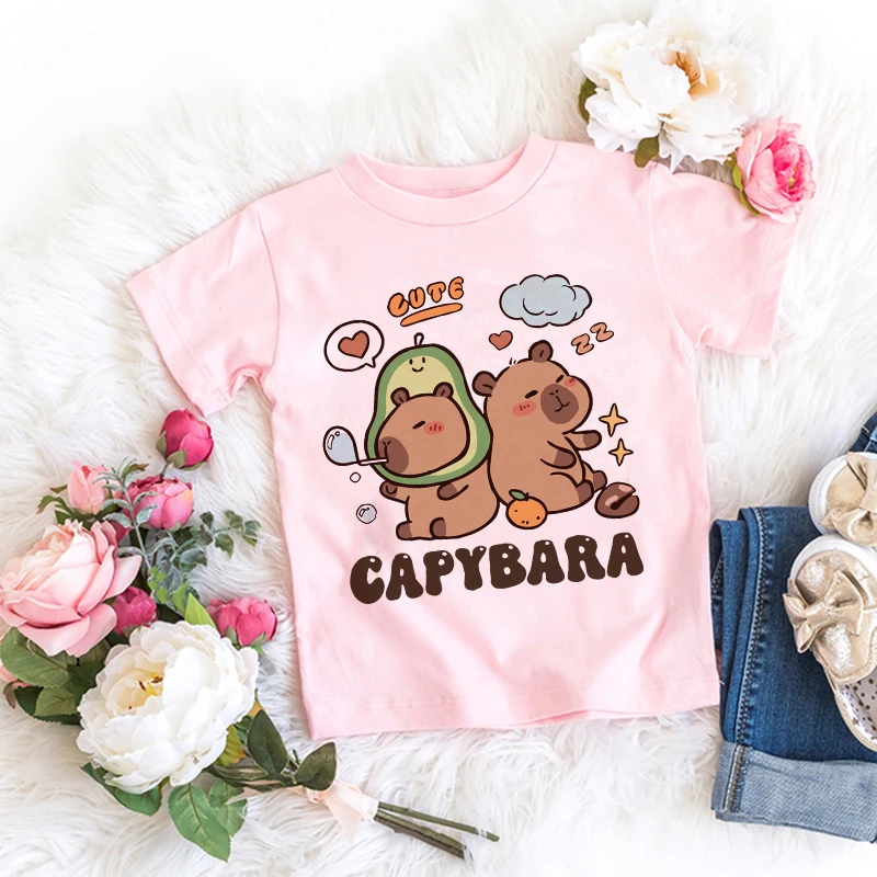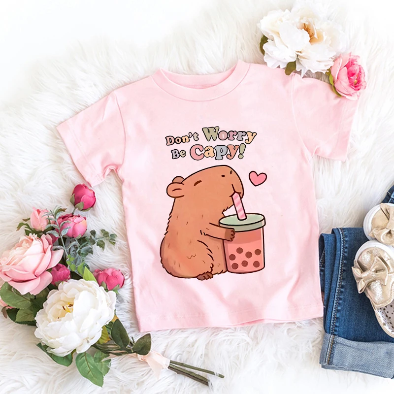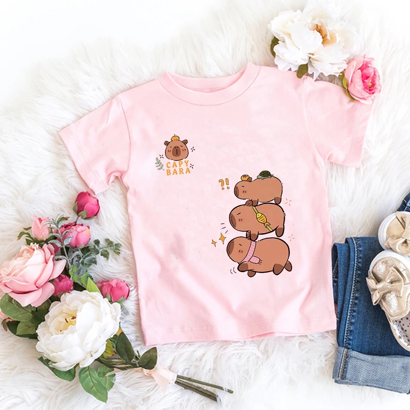 Kawaii Capybara Tshirt 어린이 어린이 티셔츠 capibara 만화 의류 키즈 소녀 소년 Capybaras T 셔츠 아기 캐주얼 탑 의류