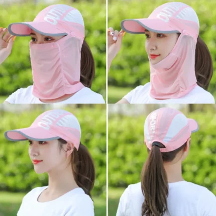 남녀공용 여름 후드 야구 모자, 자외선 차단 마스크, 페이스 커버, 사이클링 운전 등반, 야외 탈착식 태양 UV 차단 모자
