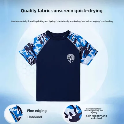 성별: 소년 원산지: 중국 • 세련된 위장 디자인:남학생용 수영복은 트렌디한 카무플라주 디자인이 특징으로 기능성뿐만 아니라 스타일리시함도 더해줍니다. • 스플릿 수영복 스타일:이 스플릿