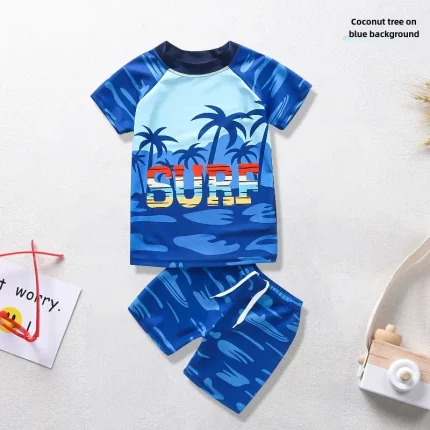 부드러운 프린트 수영 세트, 수영 서핑 수영복 세트, 상의 및 바지, 통기성 훈련 비치웨어, 어린이 소년, 여름