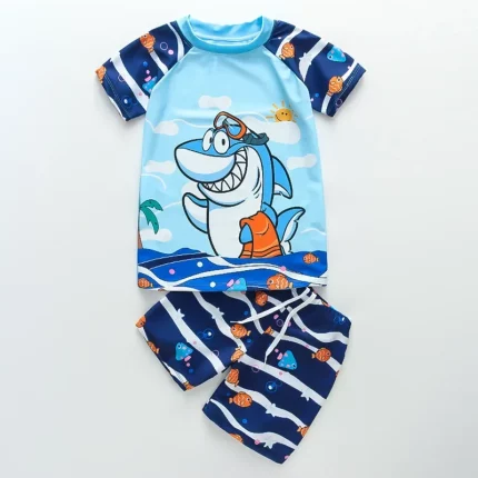 소년 투피스 수영복, 반팔 자외선 차단, 빠른 건조 수영복, 3-10 세 어린이 멋진 만화 프린트 비치웨어