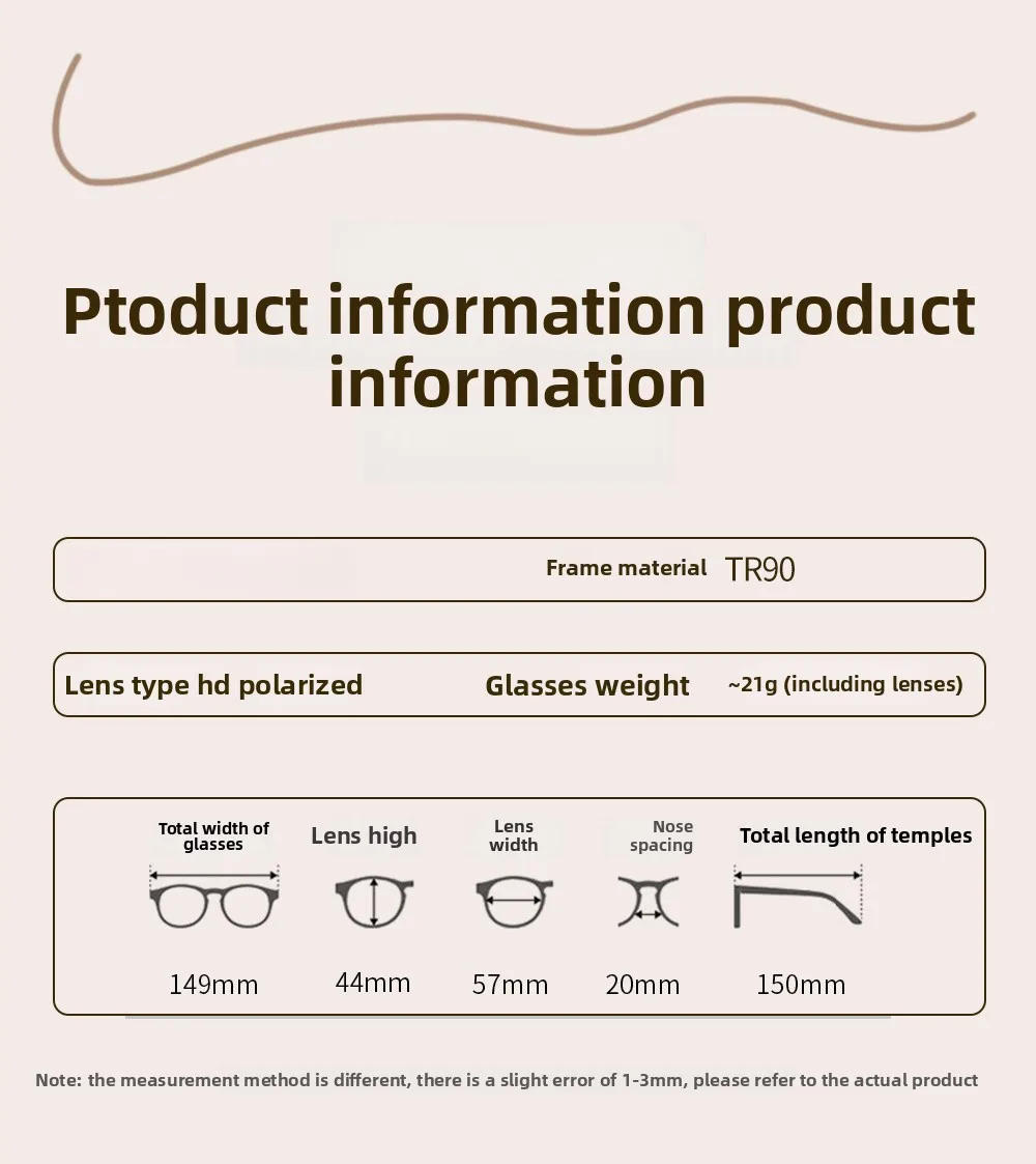 - Glasses frame color: Tea brown, black and white, gray coffee, bright black