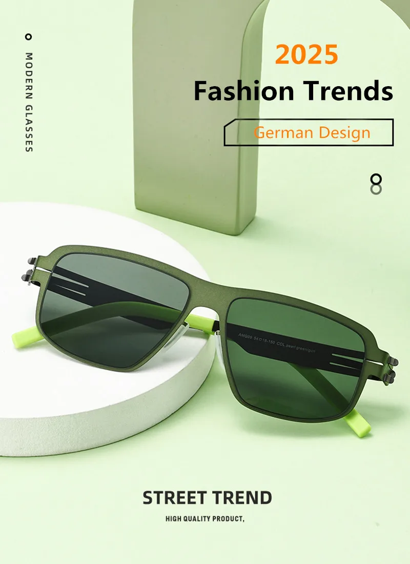 독일 디자인 남성 초경량 스테인레스 스틸 클래식 선글라스, 여성 야외 운전 생물 강철 선글라스