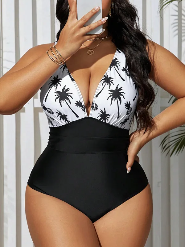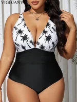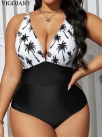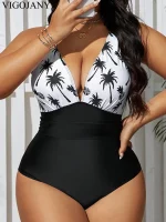 비고자니 2025 여성 패치워크 플러스 사이즈 수영복 스트랩 푸쉬업 큰 사이즈 원피스 수영복 브라질리언 비치 통통한 여성 수영복
