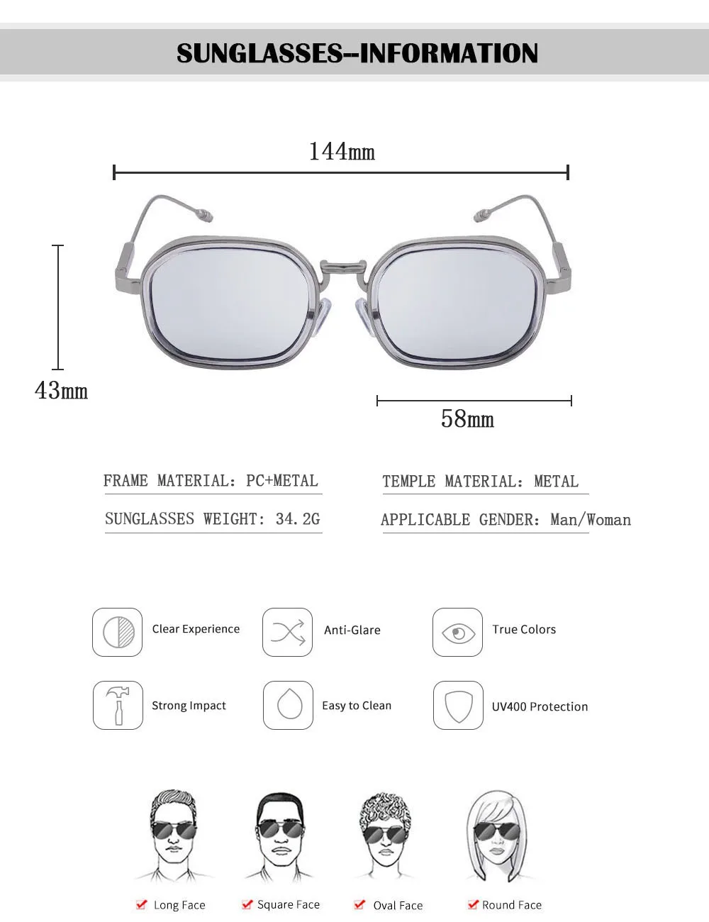 이 빈티지 스퀘어 스팀펑크 선글라스는 트렌디하고 패셔너블한 매력을 발산하며, 돋보이고 싶은 사람들에게 적합합니다.