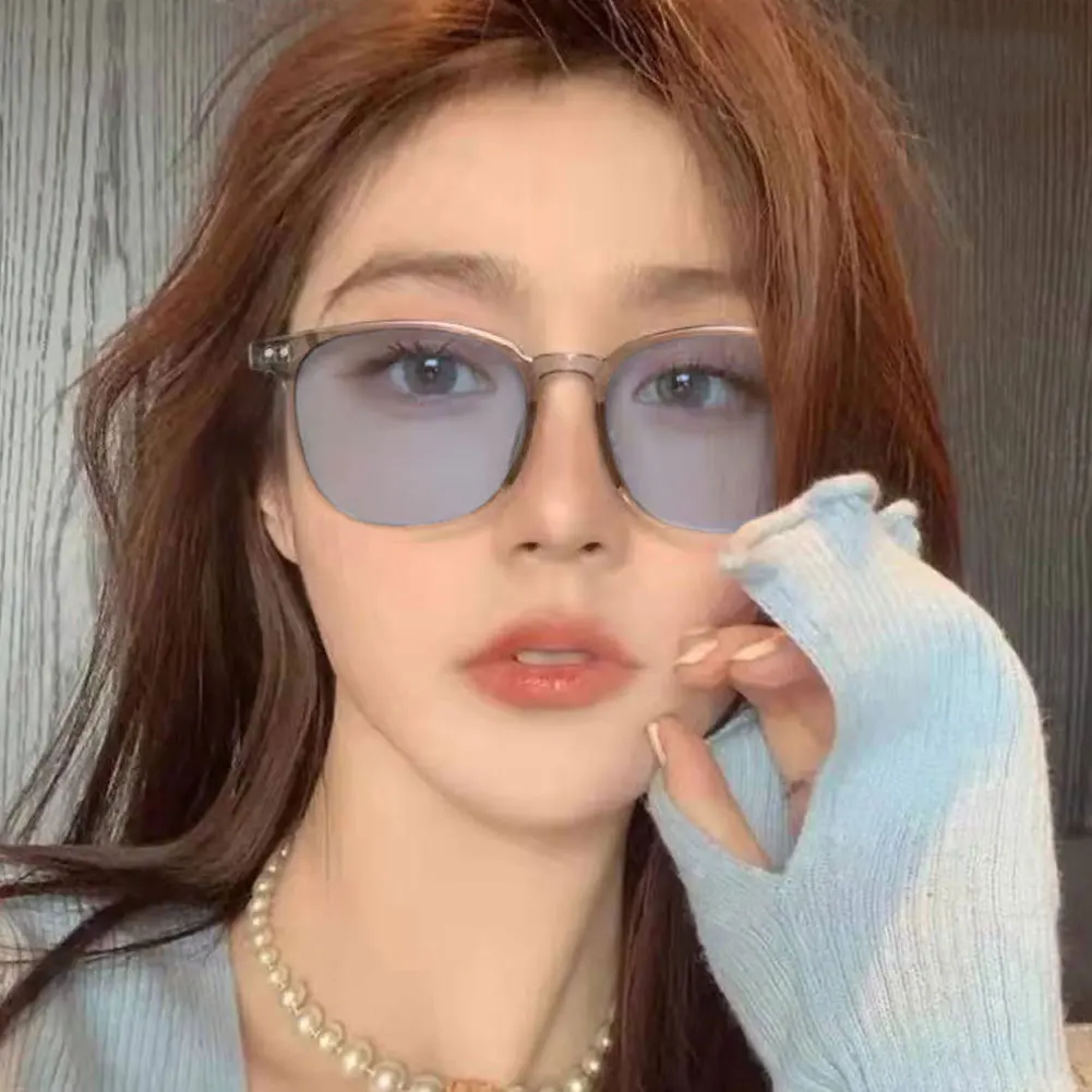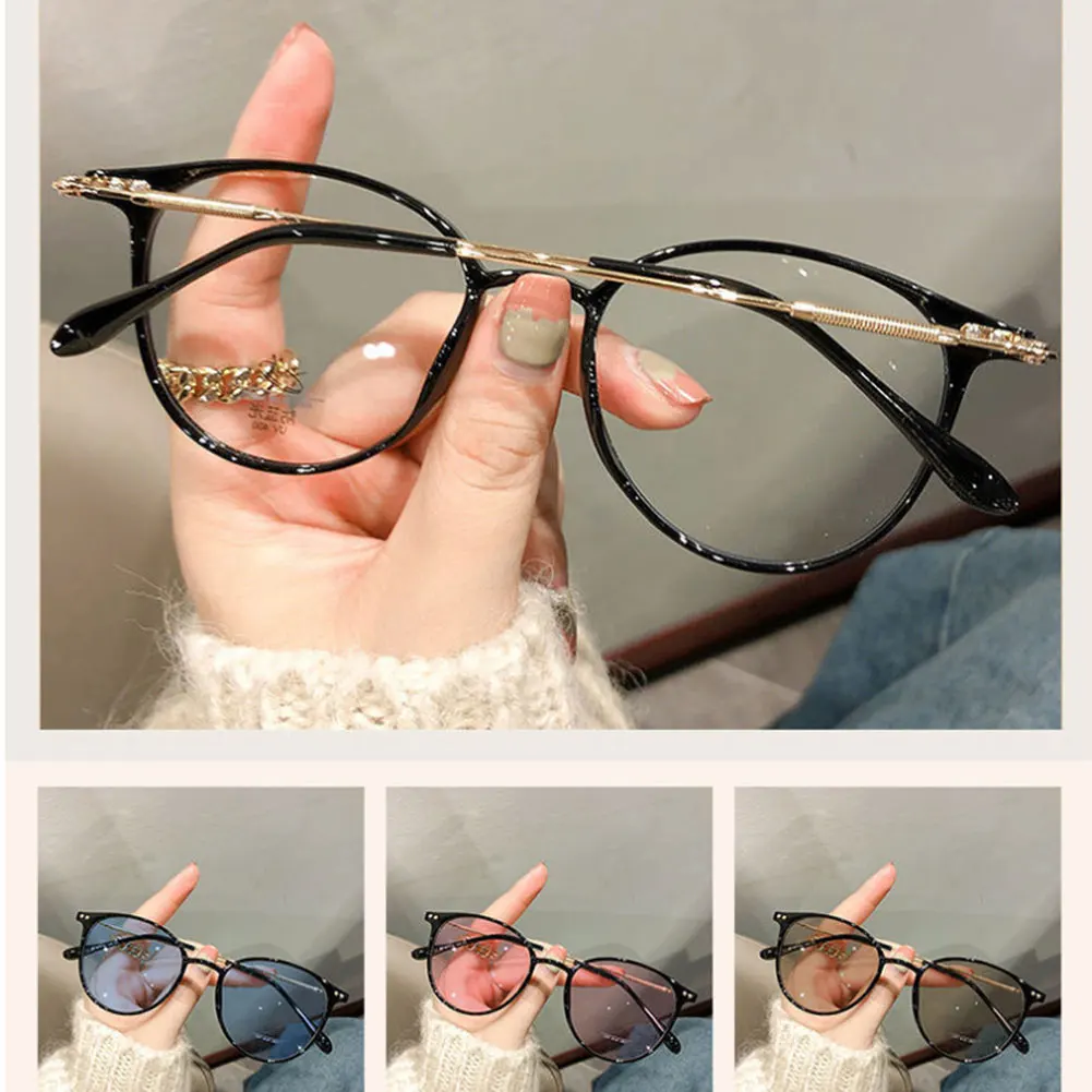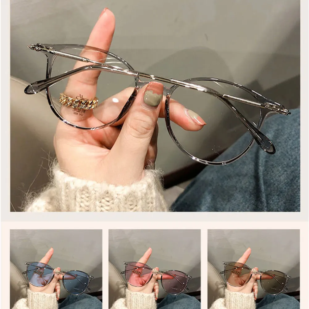 색상 변경 안티 블루 라이트 안경 패션 원형 안경 프레임 UV 보호 남성 여성을위한 야외 해변 선글라스