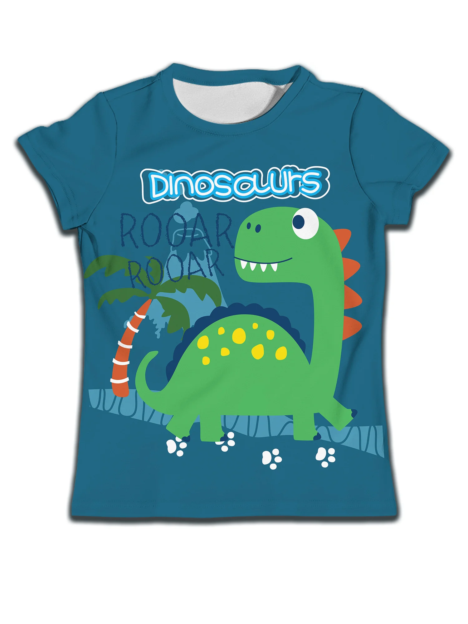 소년 반팔 티셔츠, 공룡 파라다이스 그래픽 셔츠, 소녀 아이템, 만화 블루, 아기 소년 의류, 신제품
