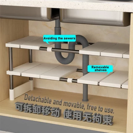 조정 가능한 캐비닛 주최자 선반 쌓을 수있는 주방 카운터 선반 텔레스코픽 싱크 홀더 캐비닛 주최자 및 보관