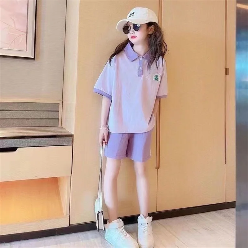 십대 스포츠 세트, 여름 캐주얼 의상, 어린이 패션 티셔츠 및 반바지, 어린이 반팔 패치워크 의류