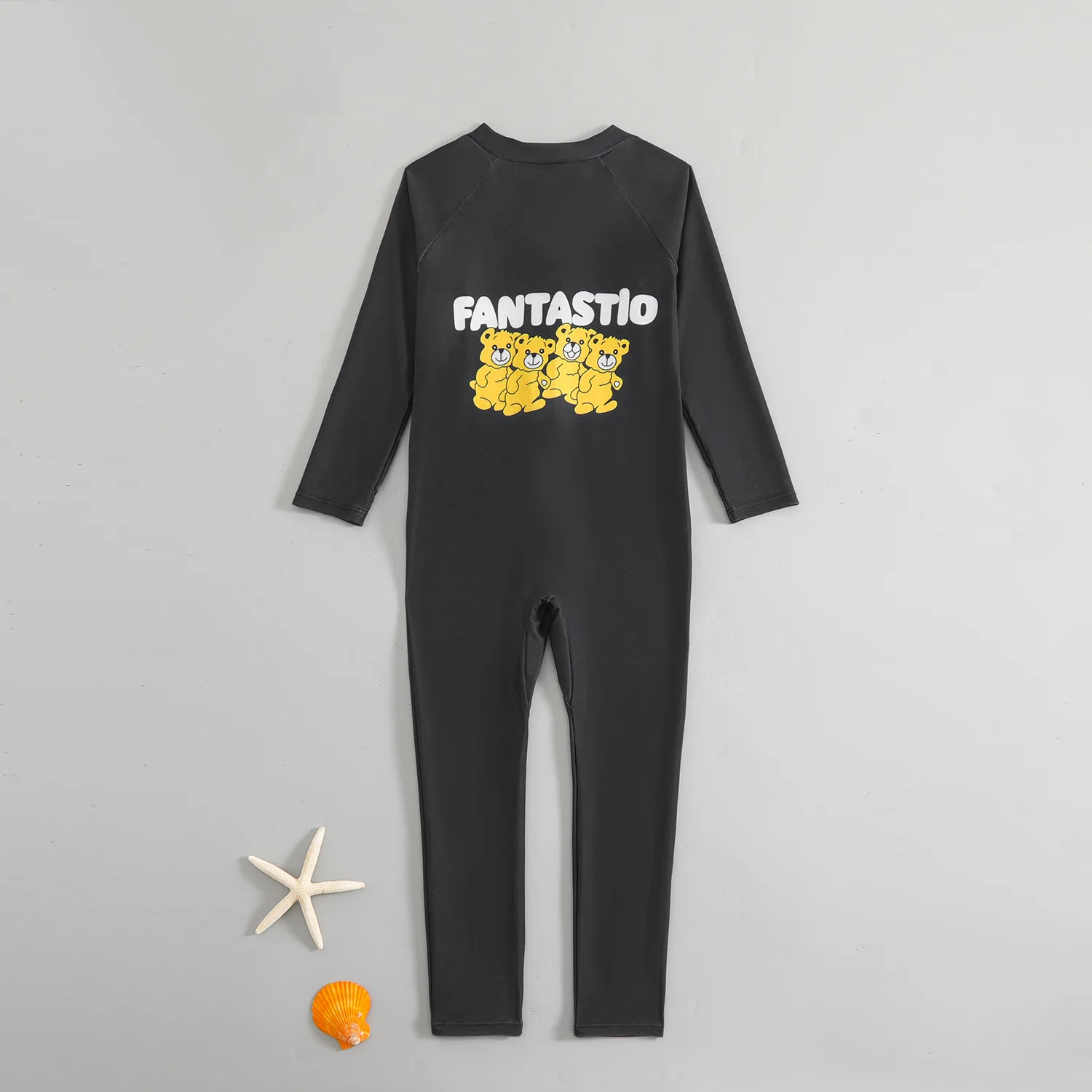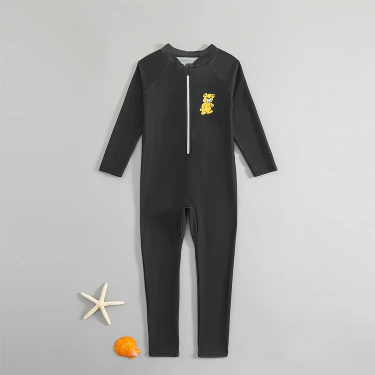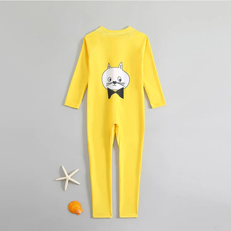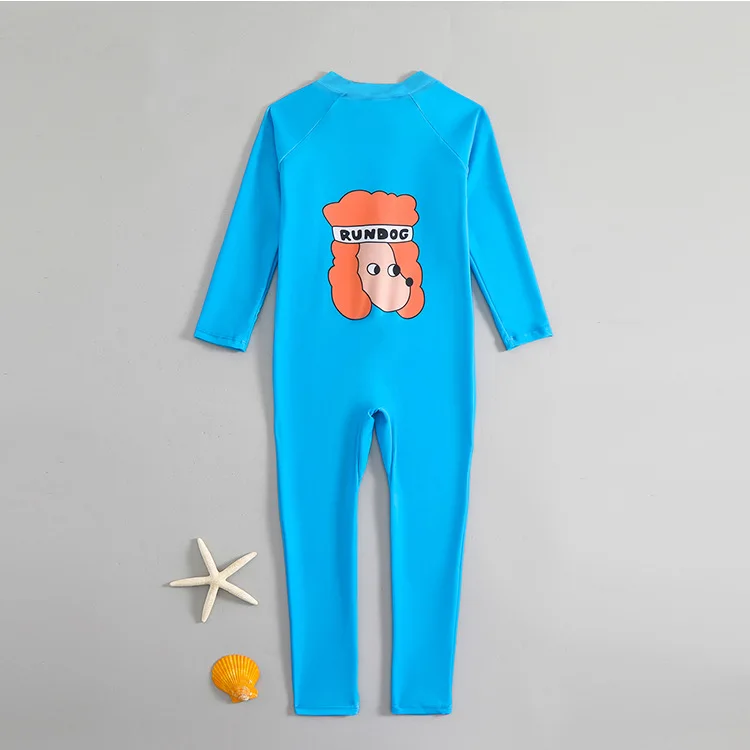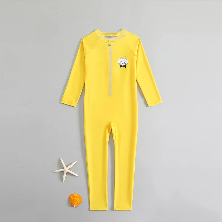어린이 원피스 수영복 귀여운 태양 보호 빠른 건조 긴 소매 지퍼 수영복 아기 소녀 소년 서핑 슈트