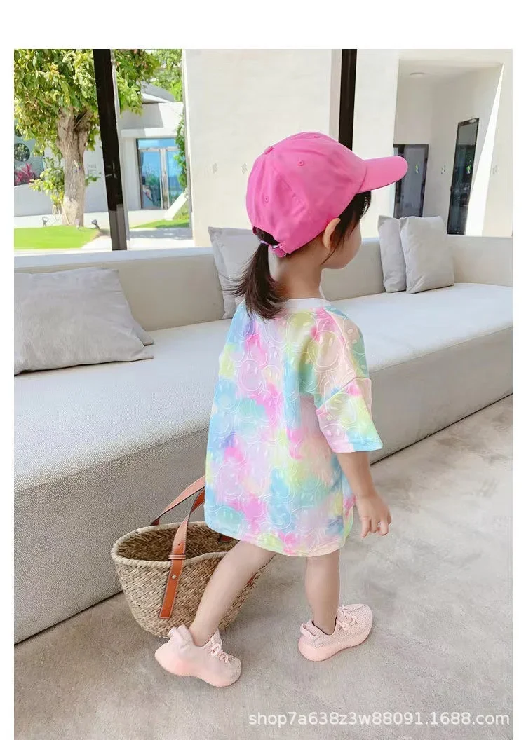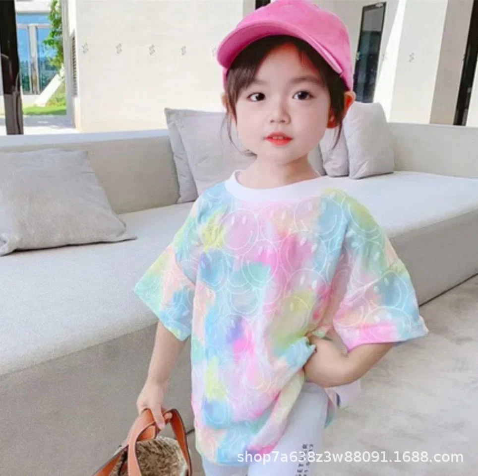 여름 짧은 소매 티셔츠 소녀 아기 중소 어린이 여성 염색 탑 아동 의류 유행