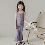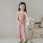 “여름 한국 스타일 유행 서양식 세트 얼음 실크 얇은 스타일 어린이 줄무늬 스트랩 탱크 탑 Bellbottom 바지 세트”의 첫 상품평을 남겨주세요 응답 취소