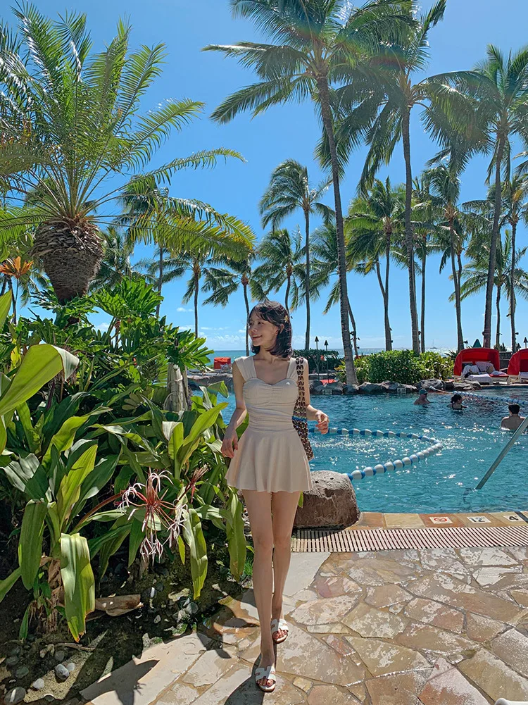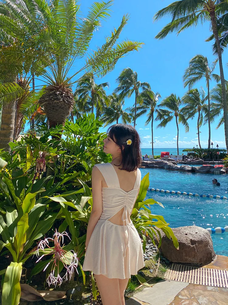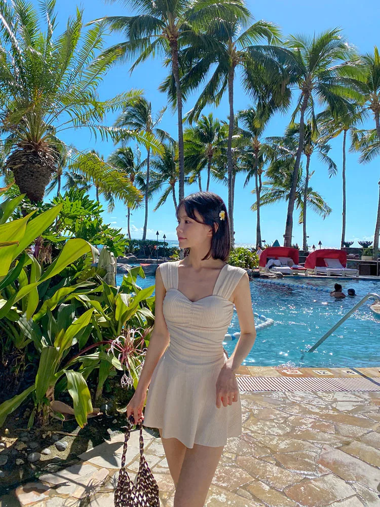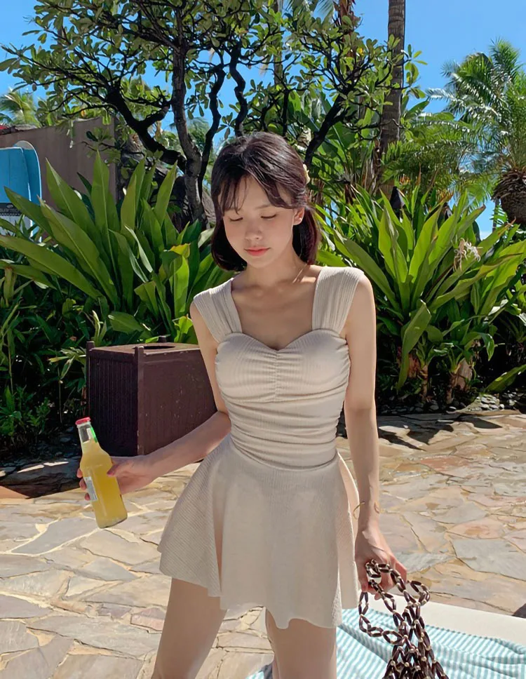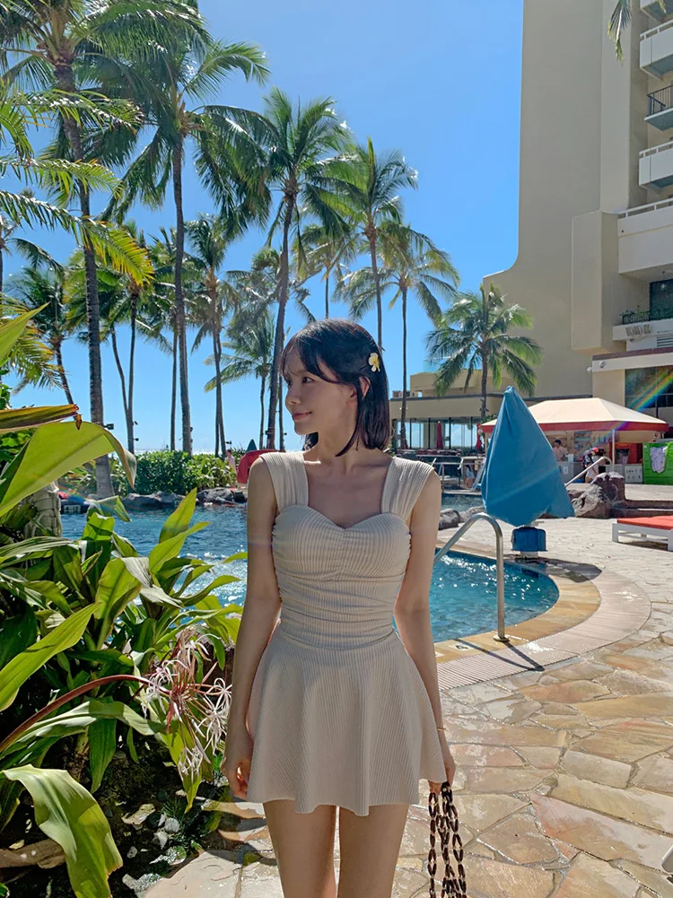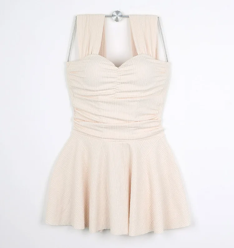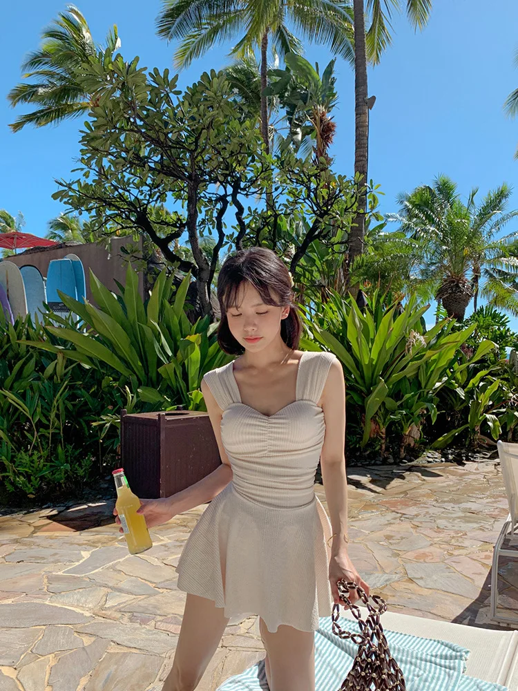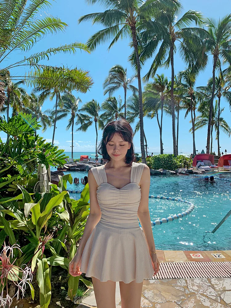여성을위한 보수적 인 원피스 수영복 섹시 슬리밍 배꼽 커버 Ins Fairy Hot Spring 수영복 캐주얼 민소매 수영복