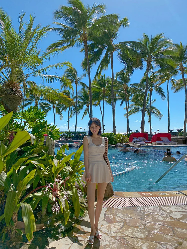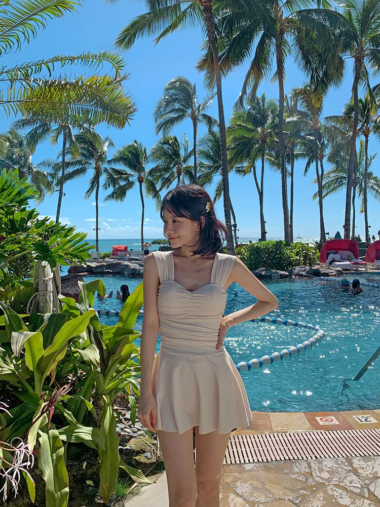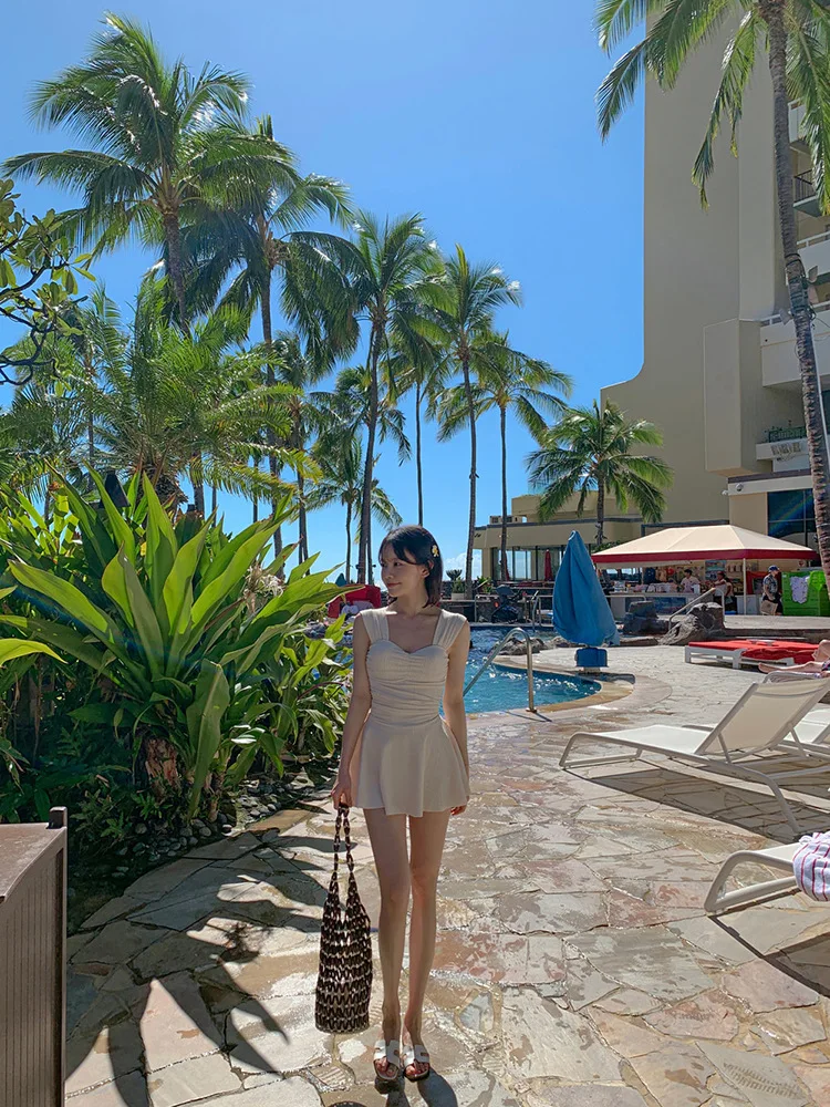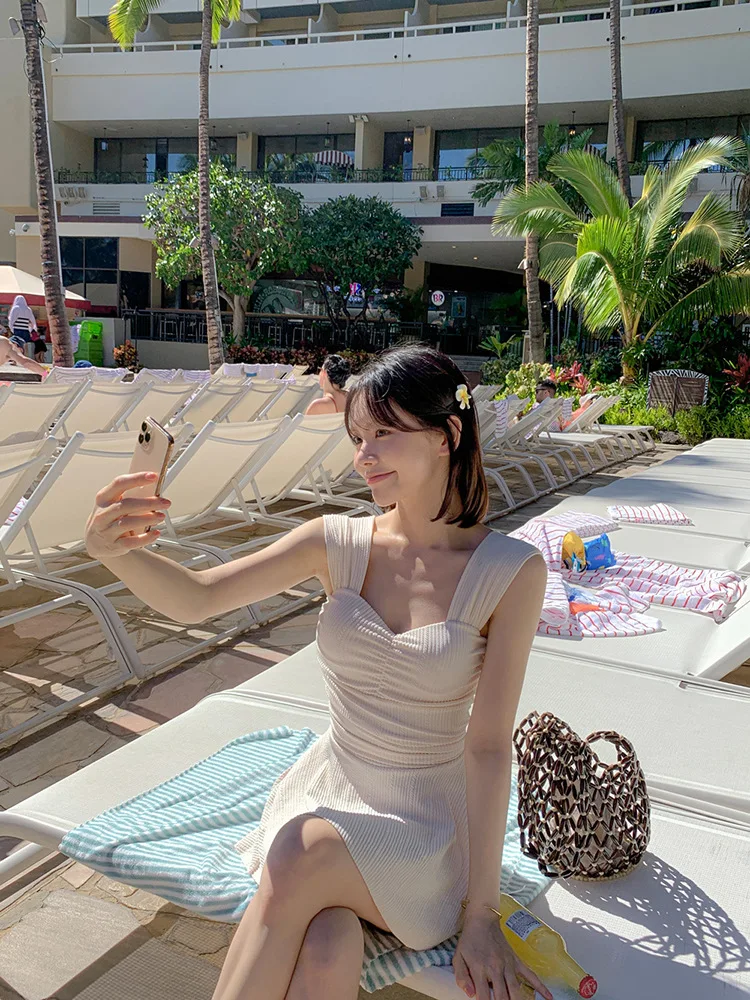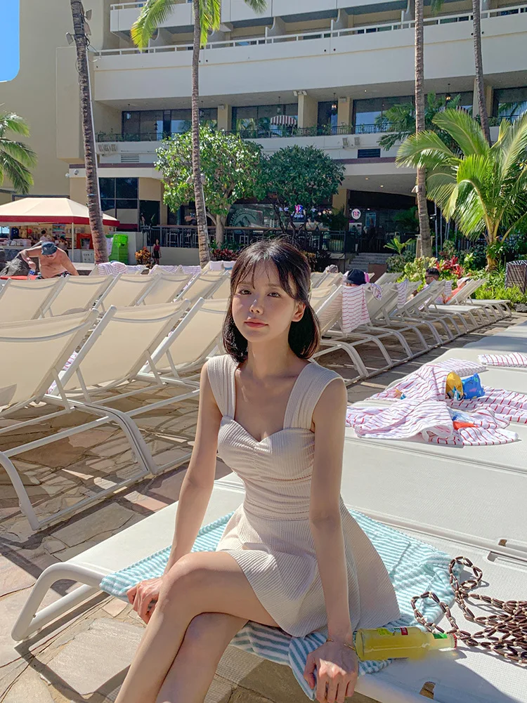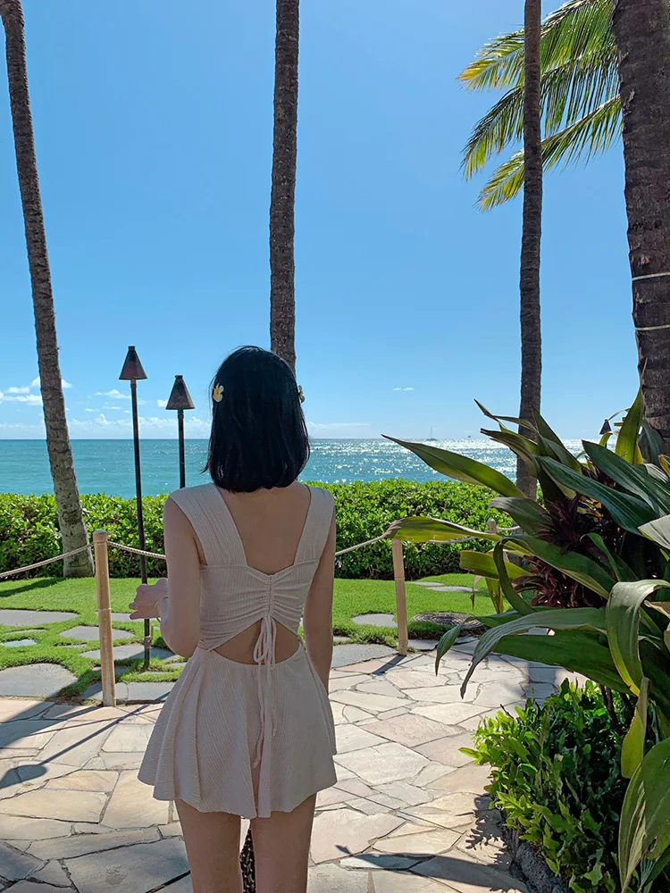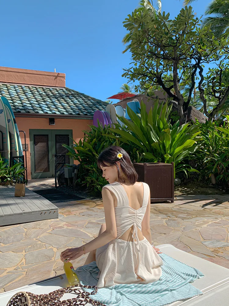 여성을위한 보수적 인 원피스 수영복 섹시 슬리밍 배꼽 커버 Ins Fairy Hot Spring 수영복 캐주얼 민소매 수영복