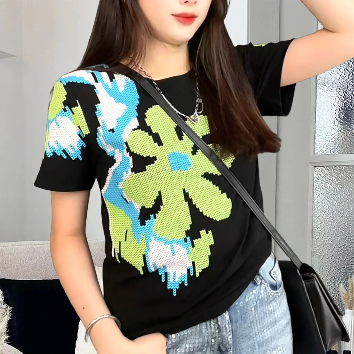 “여성을 위한 코튼 여름 3D 포밍 프린트 반소매 티셔츠 세련되고 다재다능한 탑”의 첫 상품평을 남겨주세요 응답 취소