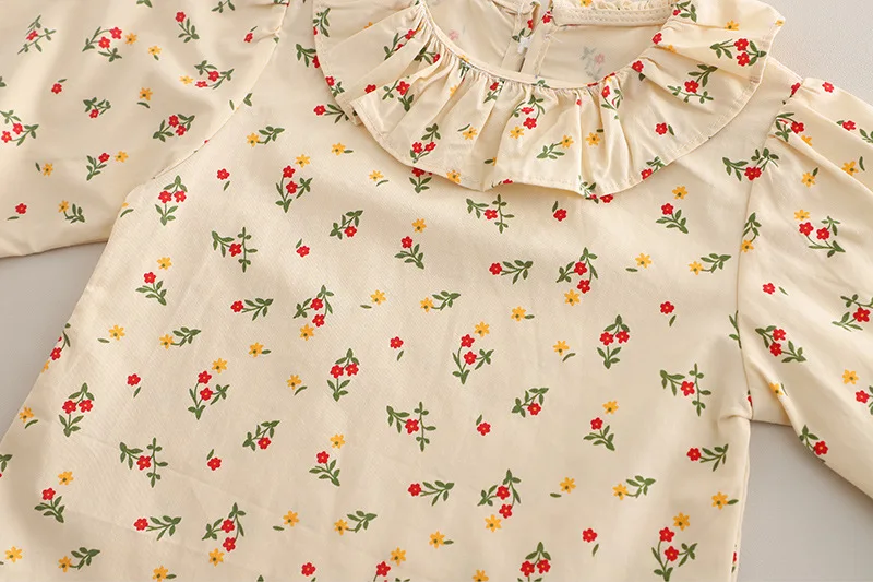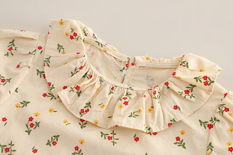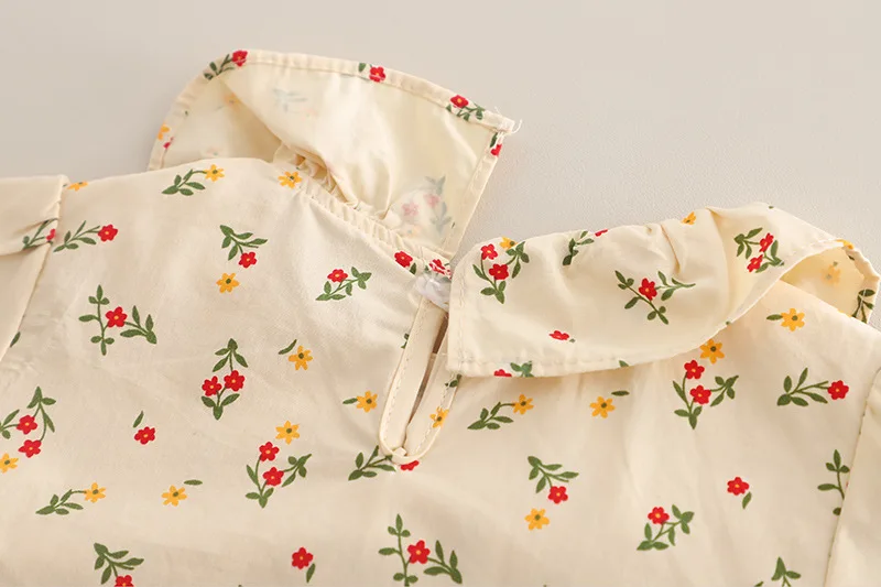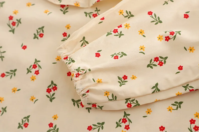 3.**달콤한 디테일**: 꽃무늬 패턴, 러플 칼라, 리본 액센트가 사랑스럽고 여성스러운 느낌을 더해줍니다.