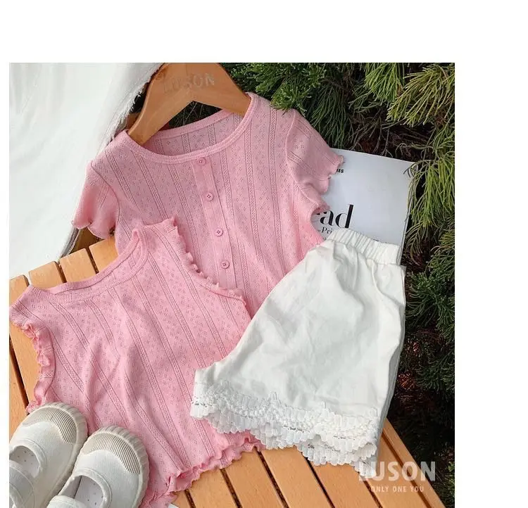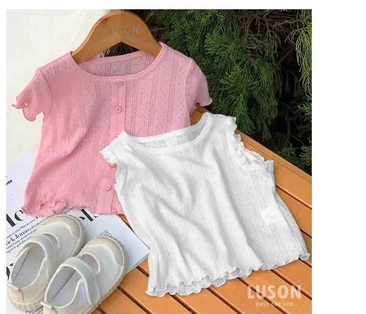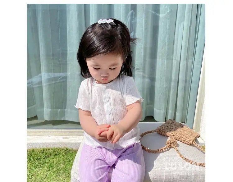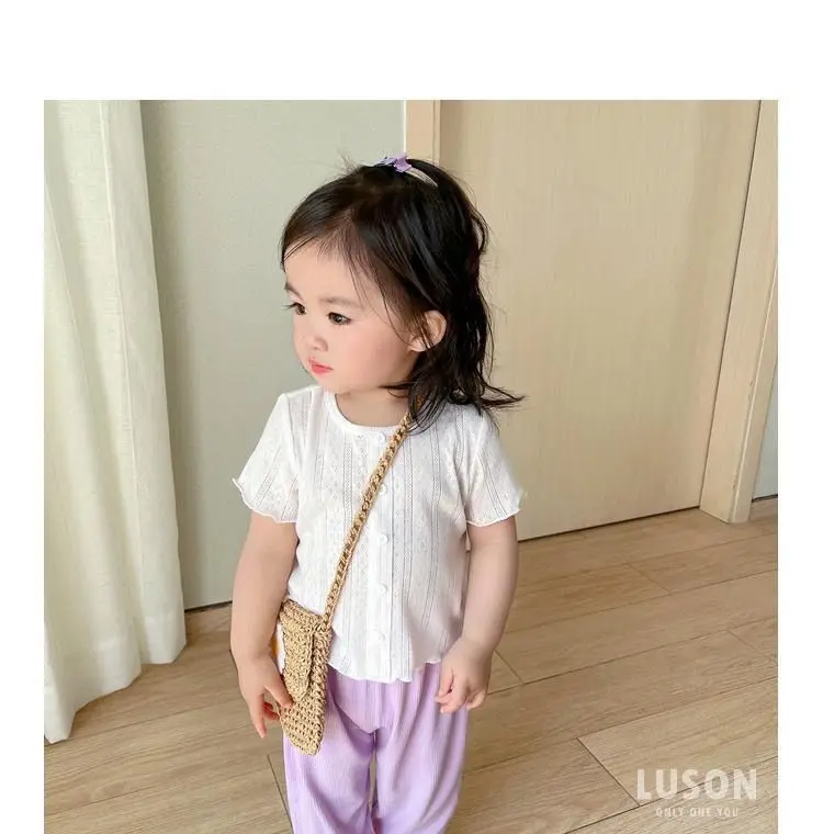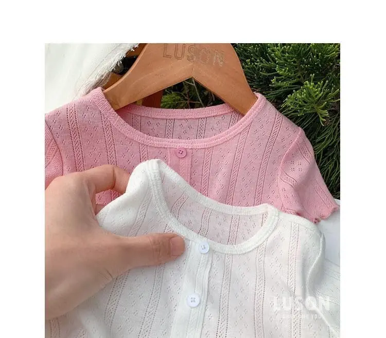 여자 여름 반팔 티셔츠 새로운 아기 스위트 탑 여름 반팔 얇은 통기성 아기 티셔츠 여자 옷