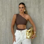 원숄더 2025 섹시한 여성 원피스 수영복, 여성 비키니, 하이웨이스트 모노키니, 수영 세트, 목욕 세트 비치웨어