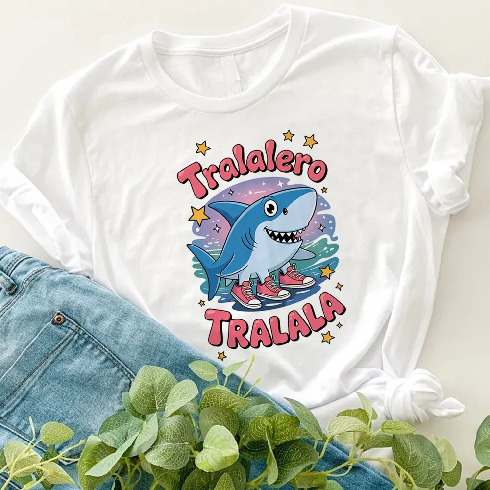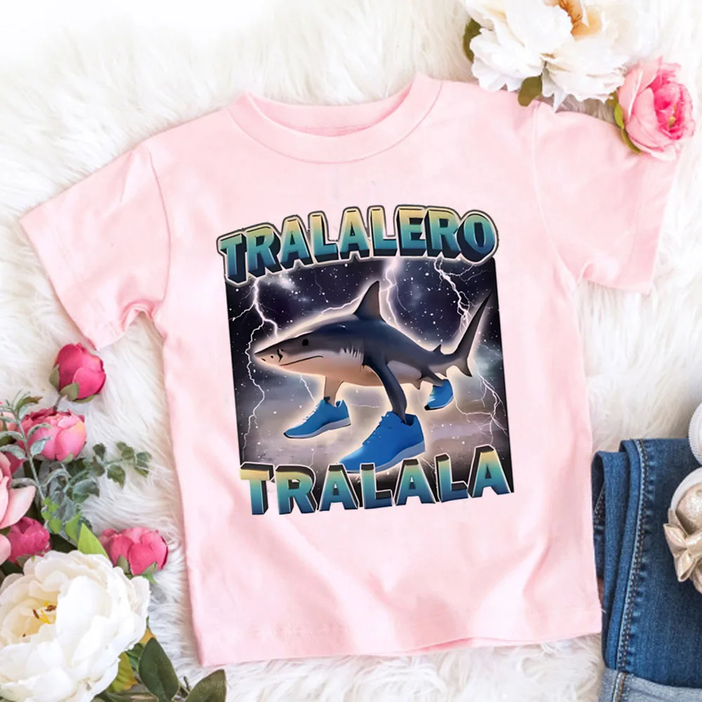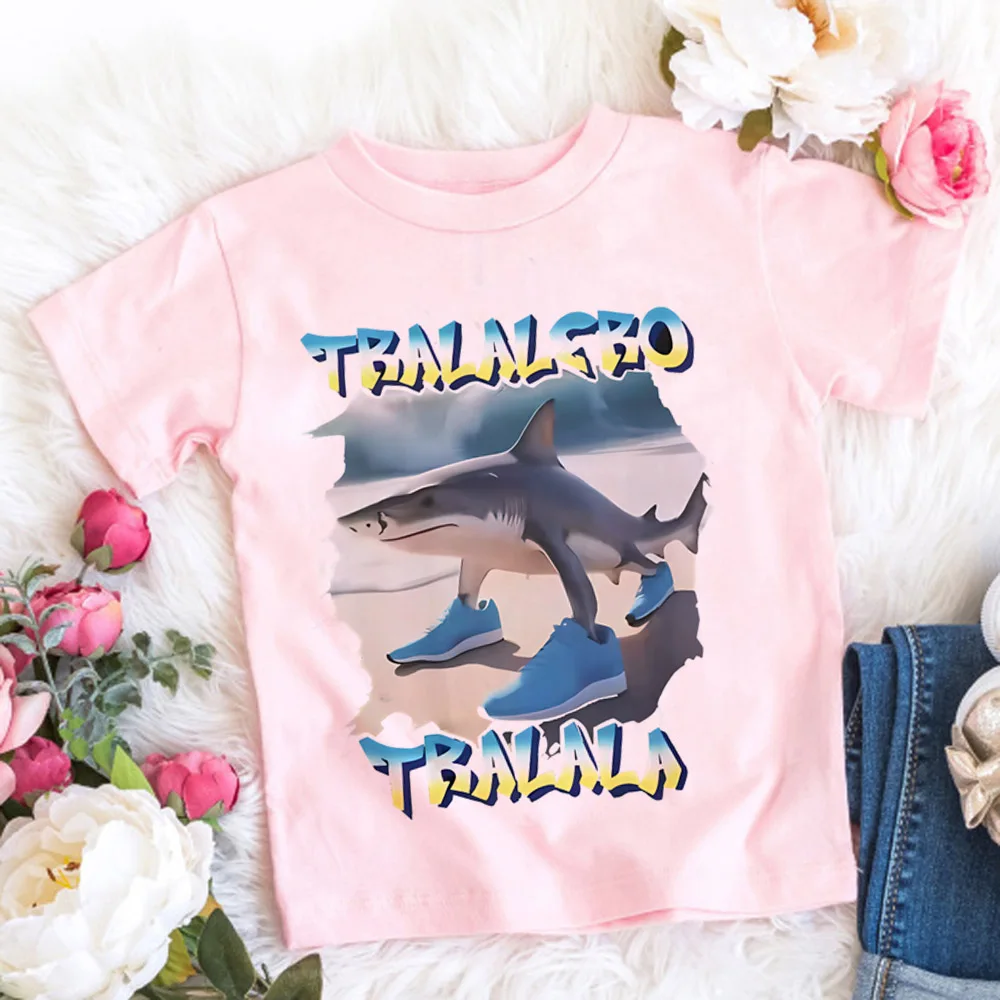 이탈리아 Brainrot 동물 어린이 티셔츠 Tralalero Tralala 재미 있은 상어 반팔 탑 어린이 재미 있은 Meme 귀여운 티 여름 의류