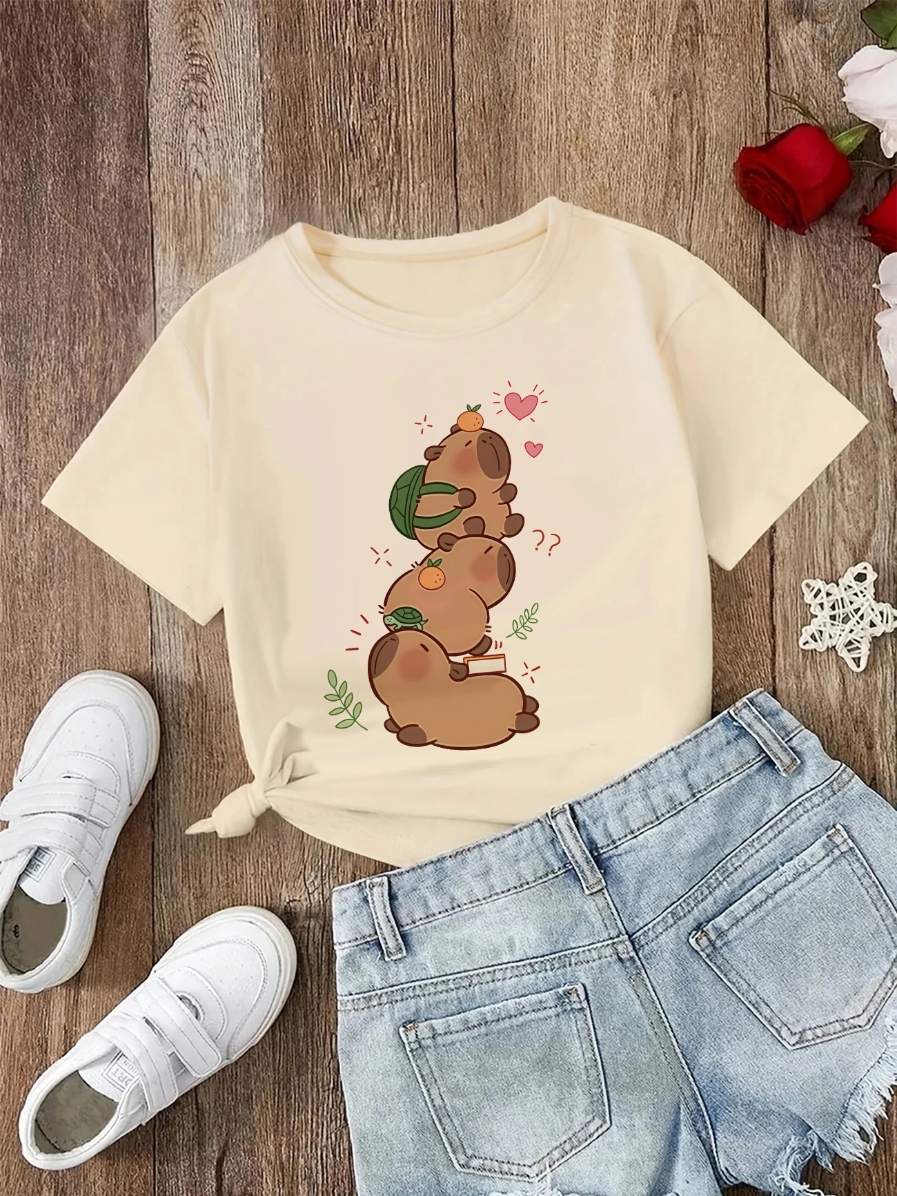 재미 있은 90s Capybara Tshirt 어린이 어린이 티셔츠 capibara 만화 옷 아이 소녀 소년 Capybaras T 셔츠 아기 캐주얼 탑 의류