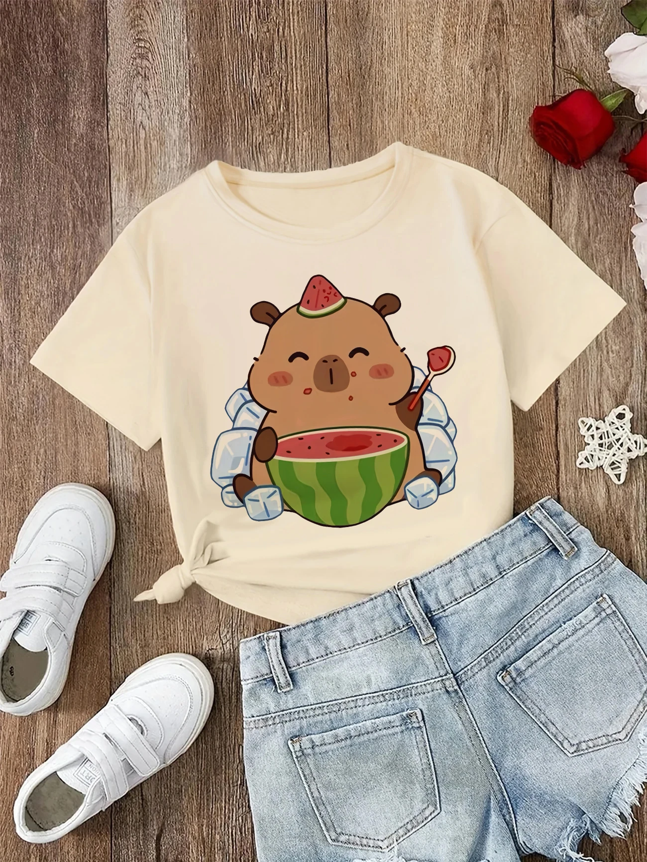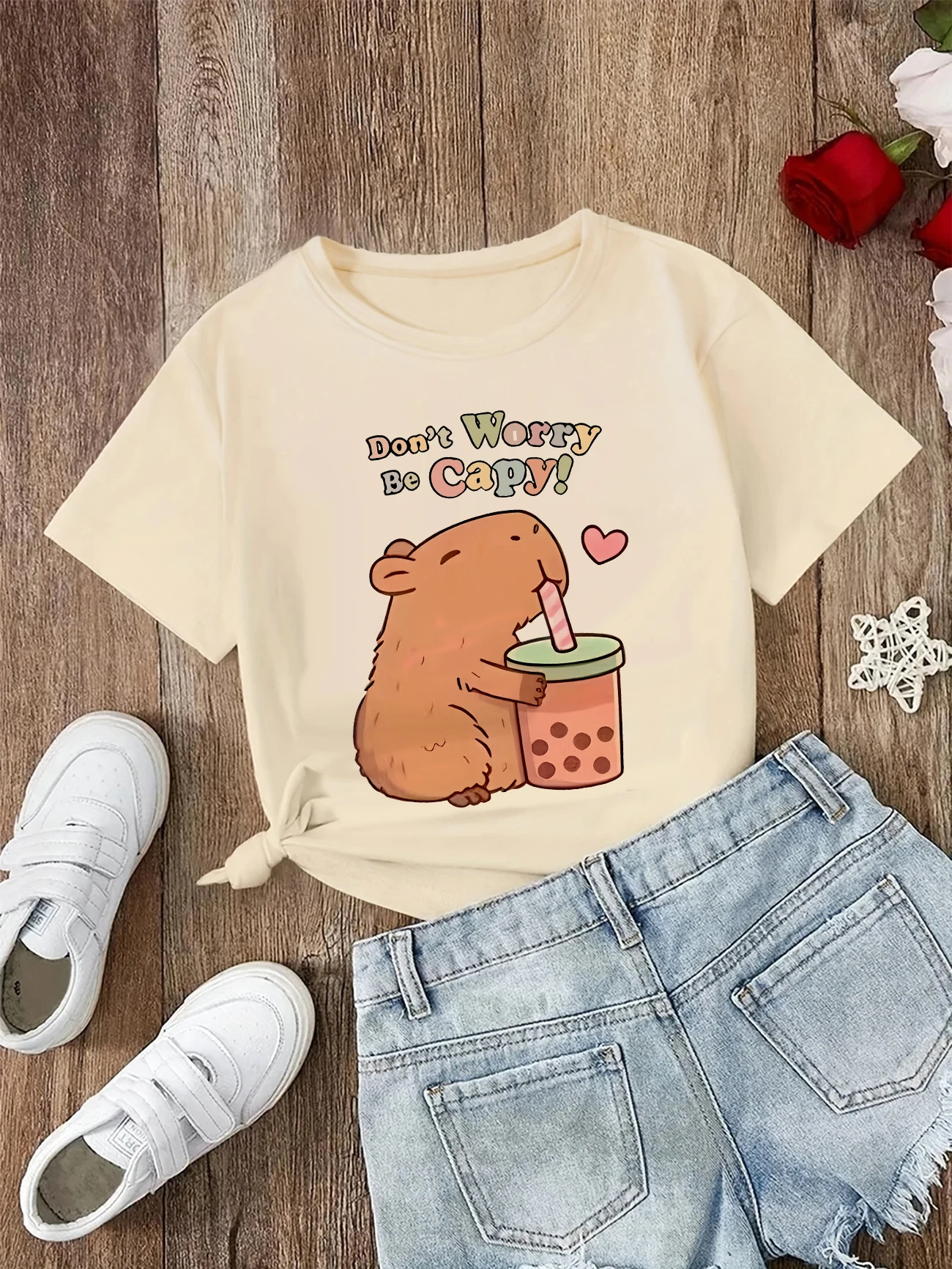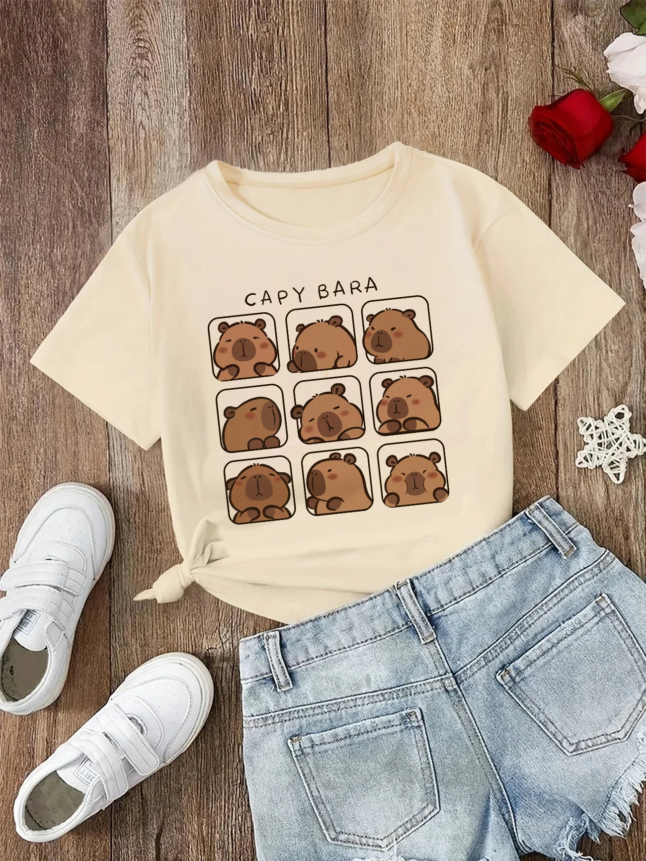 재미 있은 90s Capybara Tshirt 어린이 어린이 티셔츠 capibara 만화 옷 아이 소녀 소년 Capybaras T 셔츠 아기 캐주얼 탑 의류