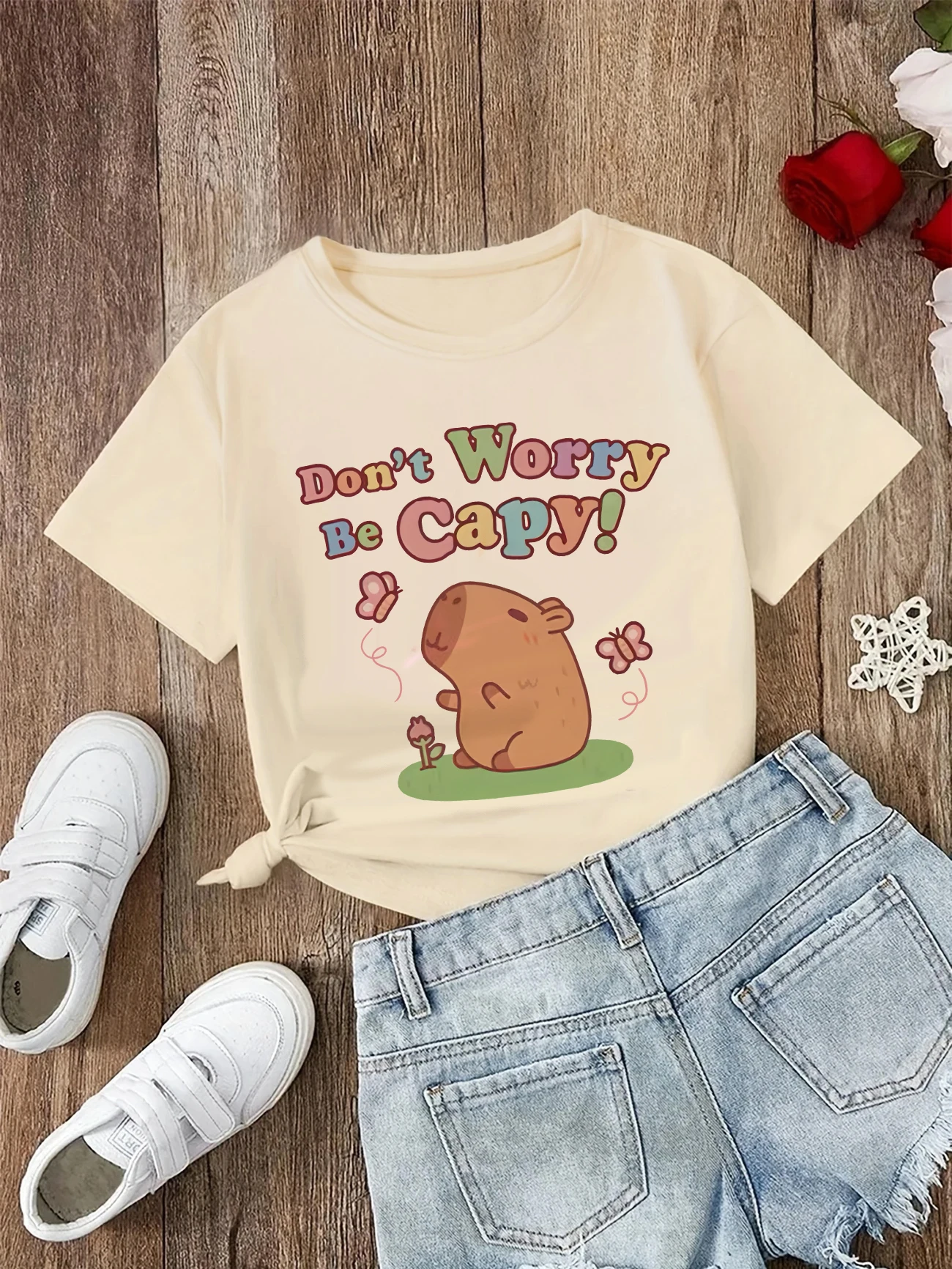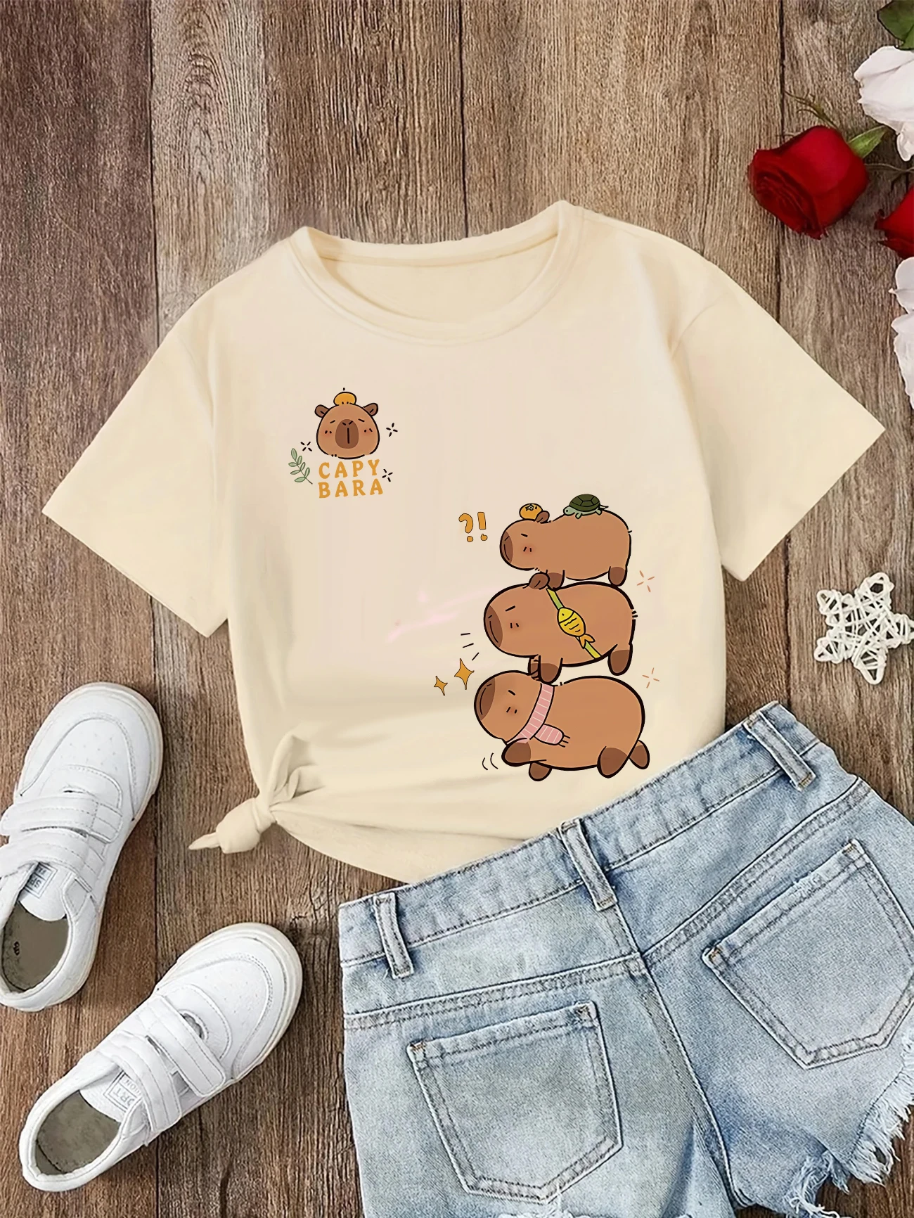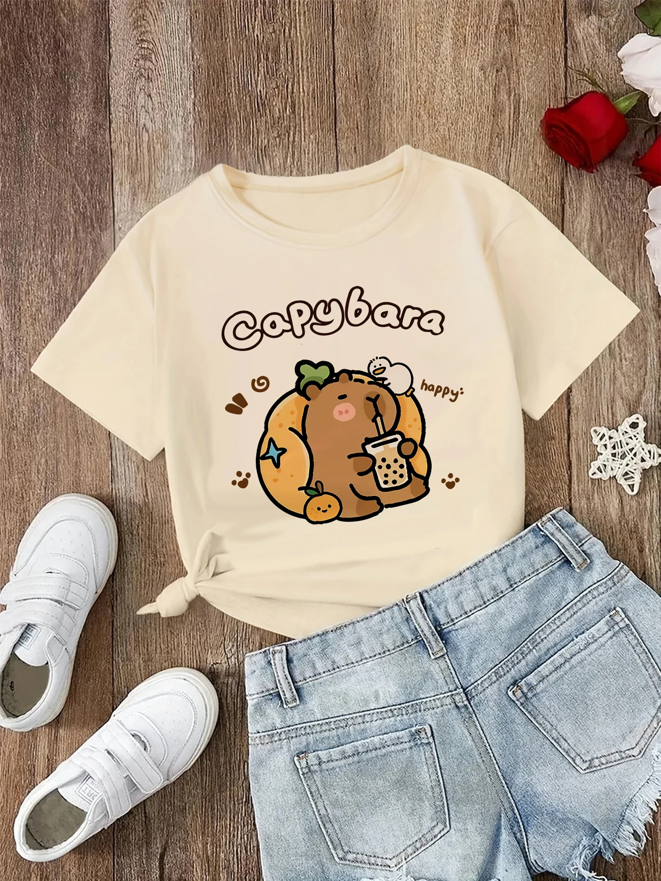 재미 있은 90s Capybara Tshirt 어린이 어린이 티셔츠 capibara 만화 옷 아이 소녀 소년 Capybaras T 셔츠 아기 캐주얼 탑 의류