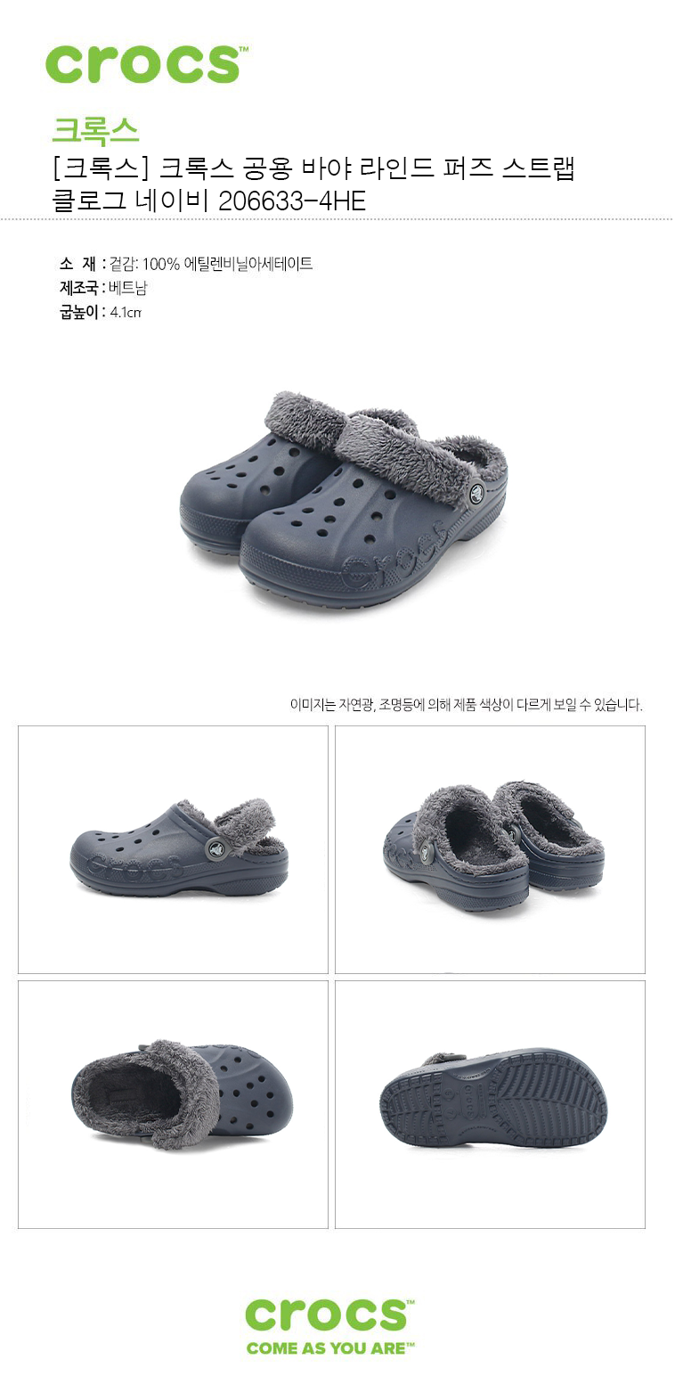 크록스 공용 바야 라인드 퍼즈 스트랩 클로그 네이비 206633-4HE