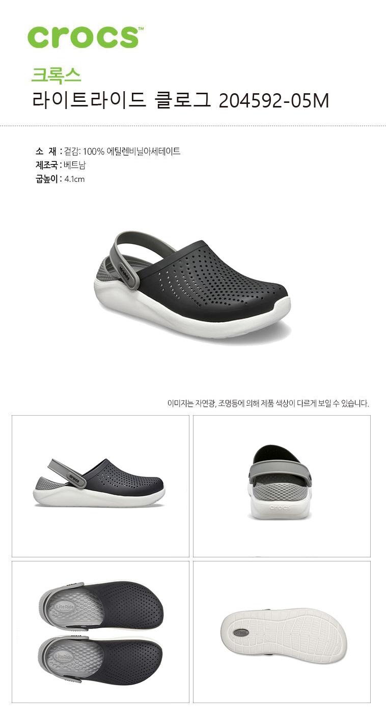 크록스 라이트라이드 클로그 슬리퍼 샌들 블랙스모크 204592-05M