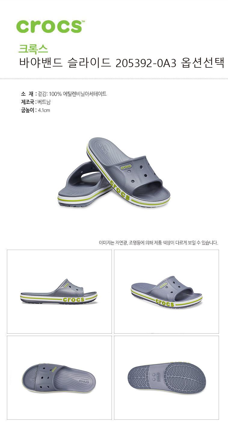 크록스 바야밴드 슬라이드 205392-0A3 차콜 볼트그린