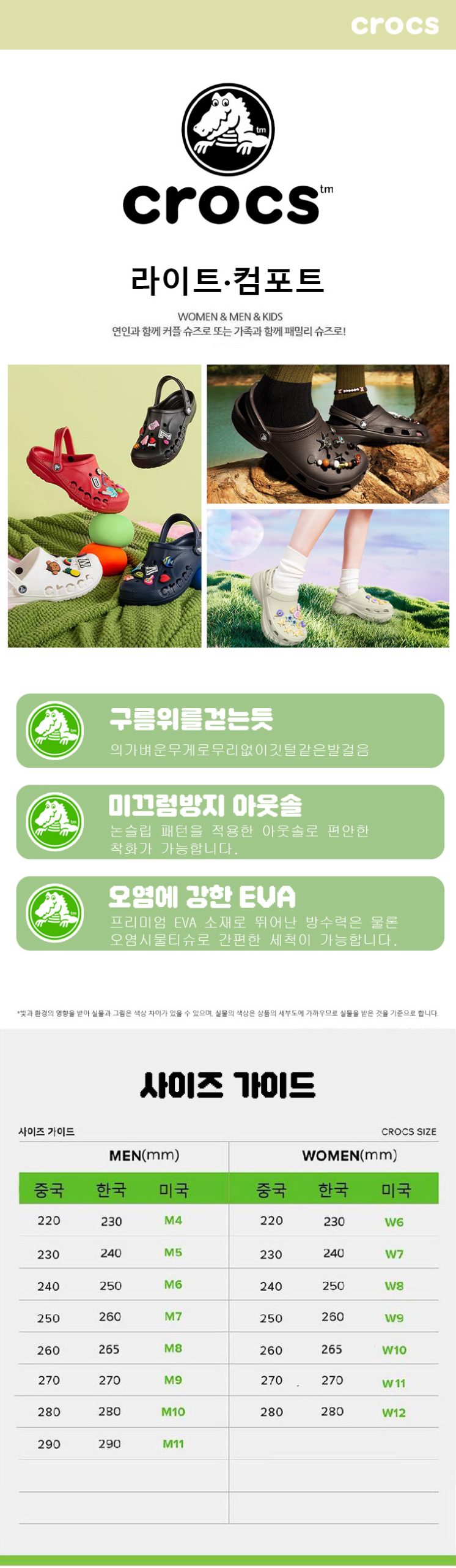 220mm(M4/W6한국 사이즈230mm) ,230mm(M5/W7한국 사이즈240mm) ,240mm(M6/W8한국 사이즈250mm) ,250mm(M7/W9한국 사이즈260mm) ,260mm(M8/W10한국 사이즈265mm) ,270mm(M9/W11한국 사이즈270mm) ,280mm( M10/W12) ,290mm M18 |